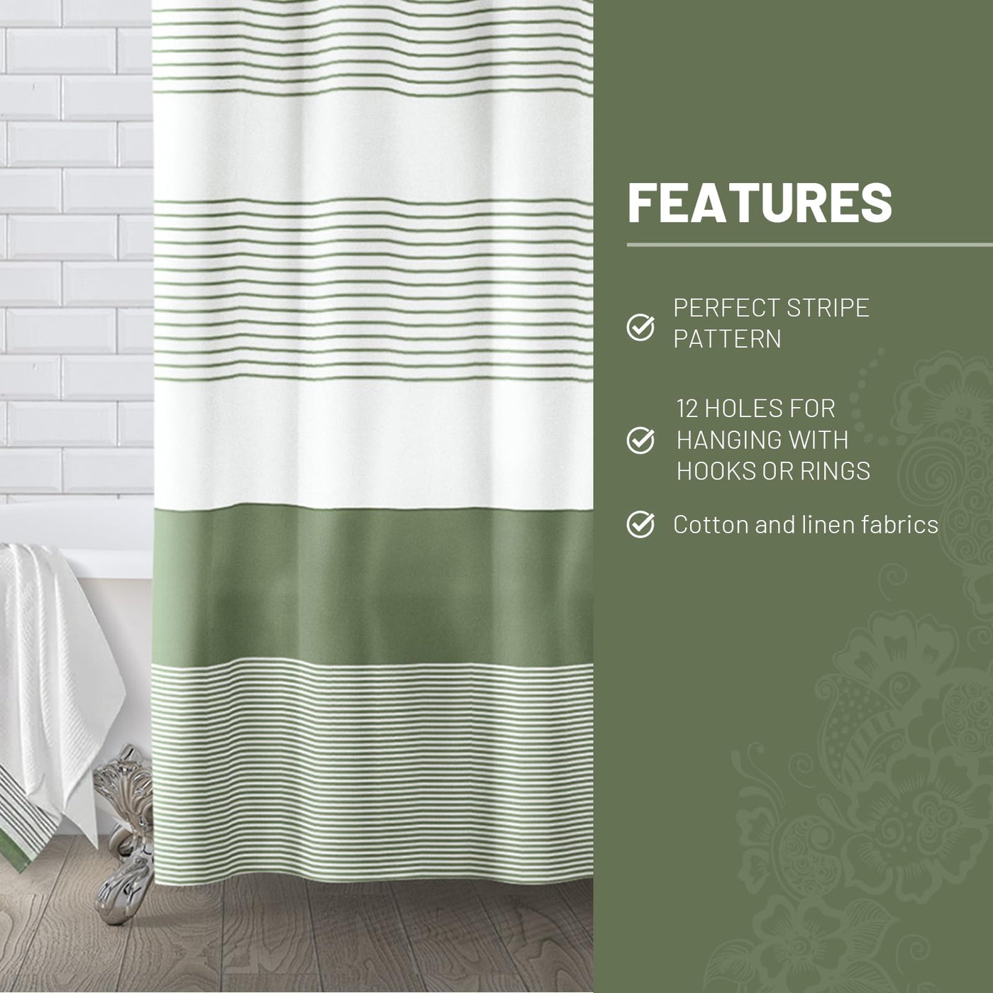 Awellife Sage Green Shower Curtain For Bathroom Linen Boho Stripe Shower Curtain Farmhouse 72' L X 60' W