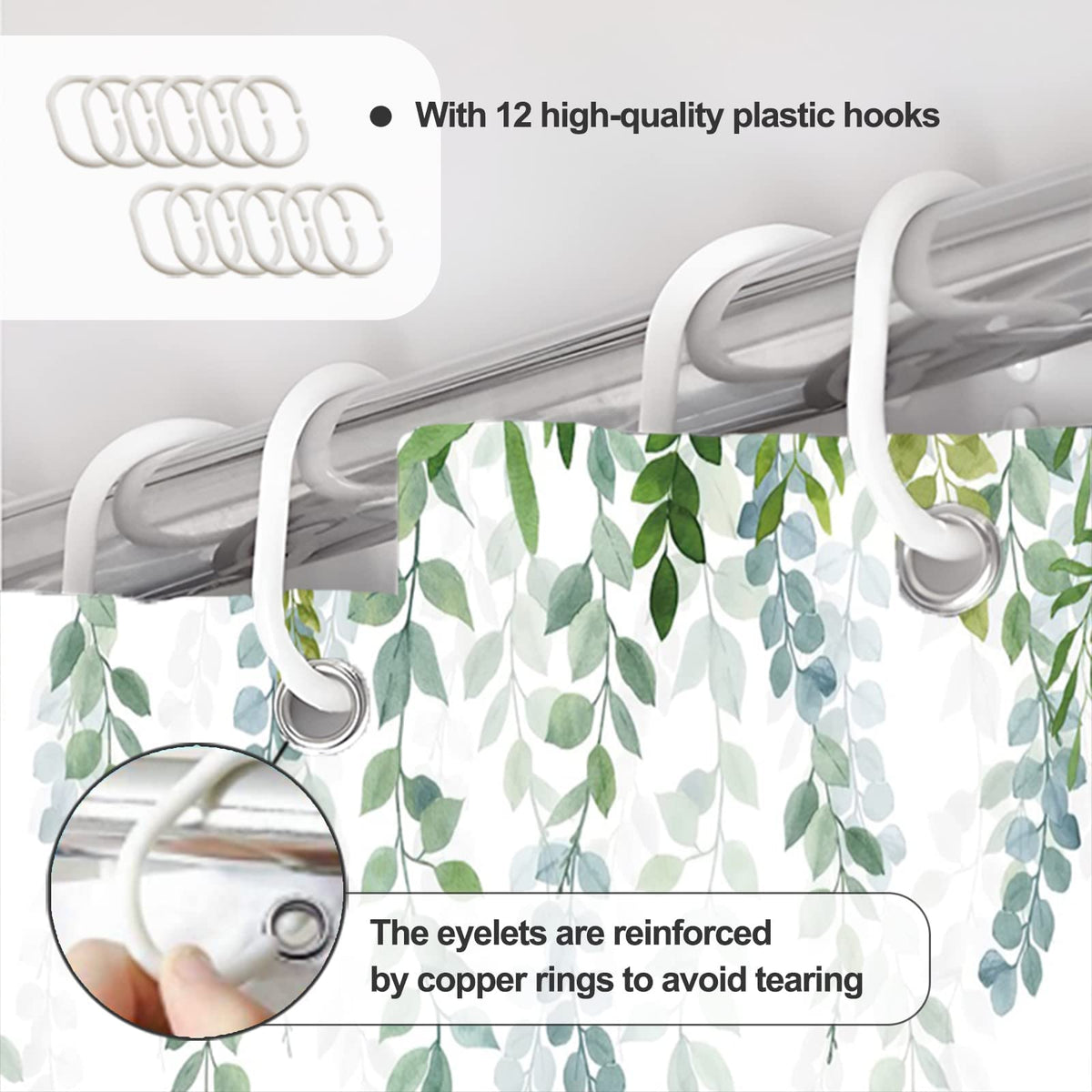 Awert Plant Shower Curtain For Bathroom Sage Green Eucalyptus Waterproof Quick-Drying Green Leaves Shower Curtain Set With Hooks