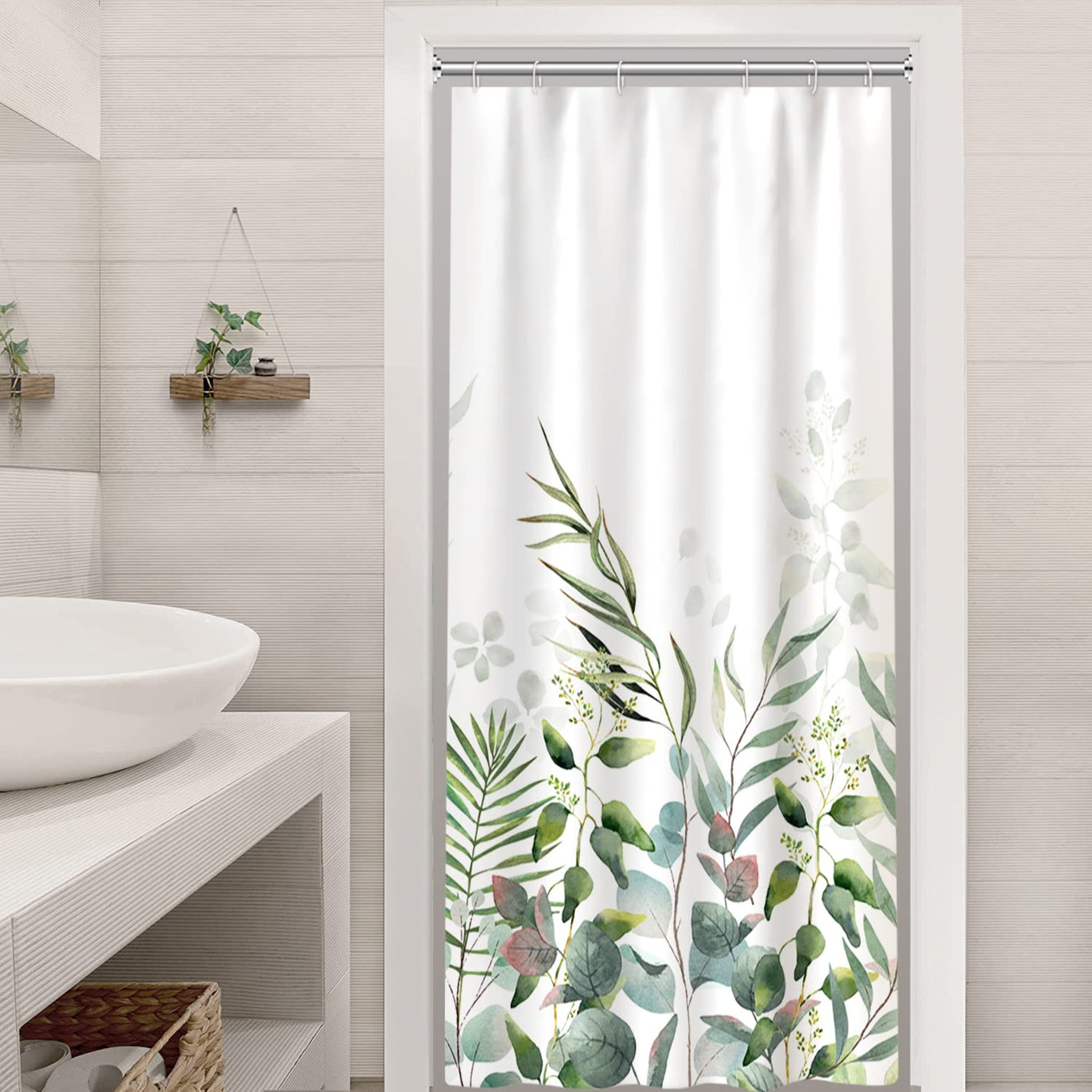 Awert Stall Shower Curtain Plants For Bathroom,Waterproof Quick-Drying Green Leaves Stall Size Shower Curtain Set With Hooks 36X