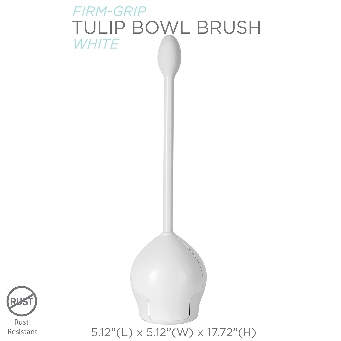 Q: What are the dimensions of the Bath Bliss Tulip Toilet Bowl Brush?A: The dimensions of the Bath Bliss Tulip Toilet Bowl Brush are 5 inches in width, 5 inches in length, and 17.7 inches in height, making it compact yet effective for bathroom use.