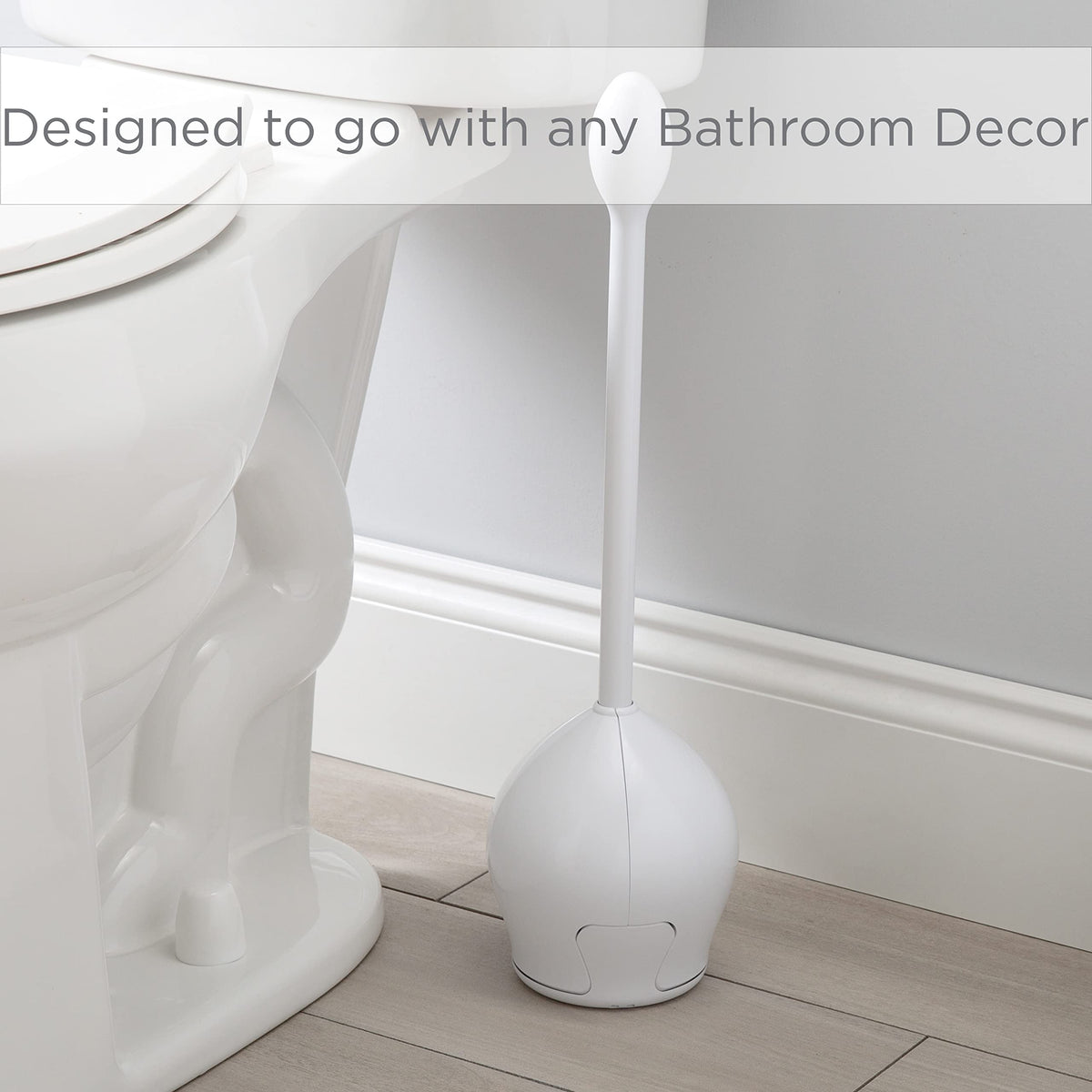Q: Will the design of this toilet brush fit with any bathroom decor?A: Yes, the Bath Bliss Tulip Toilet Bowl Brush features a contemporary and sleek design that can seamlessly blend with any bathroom decor, while its canister discreetly hides the brush when not in use.