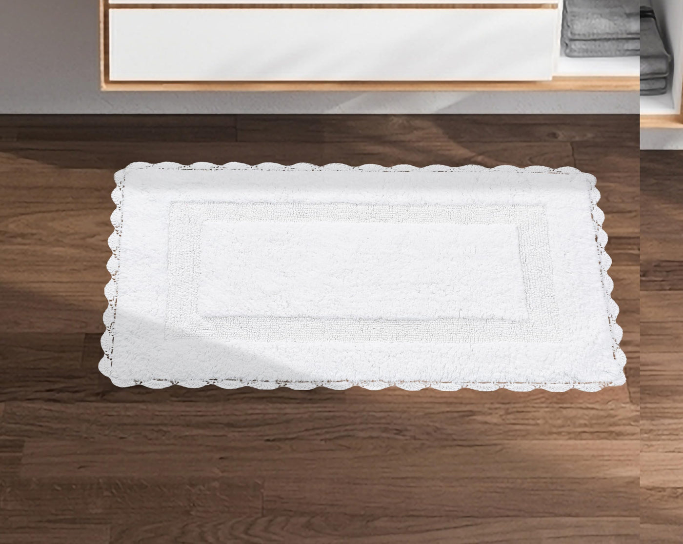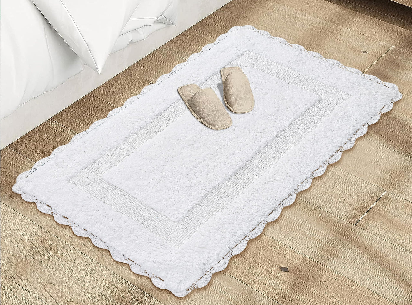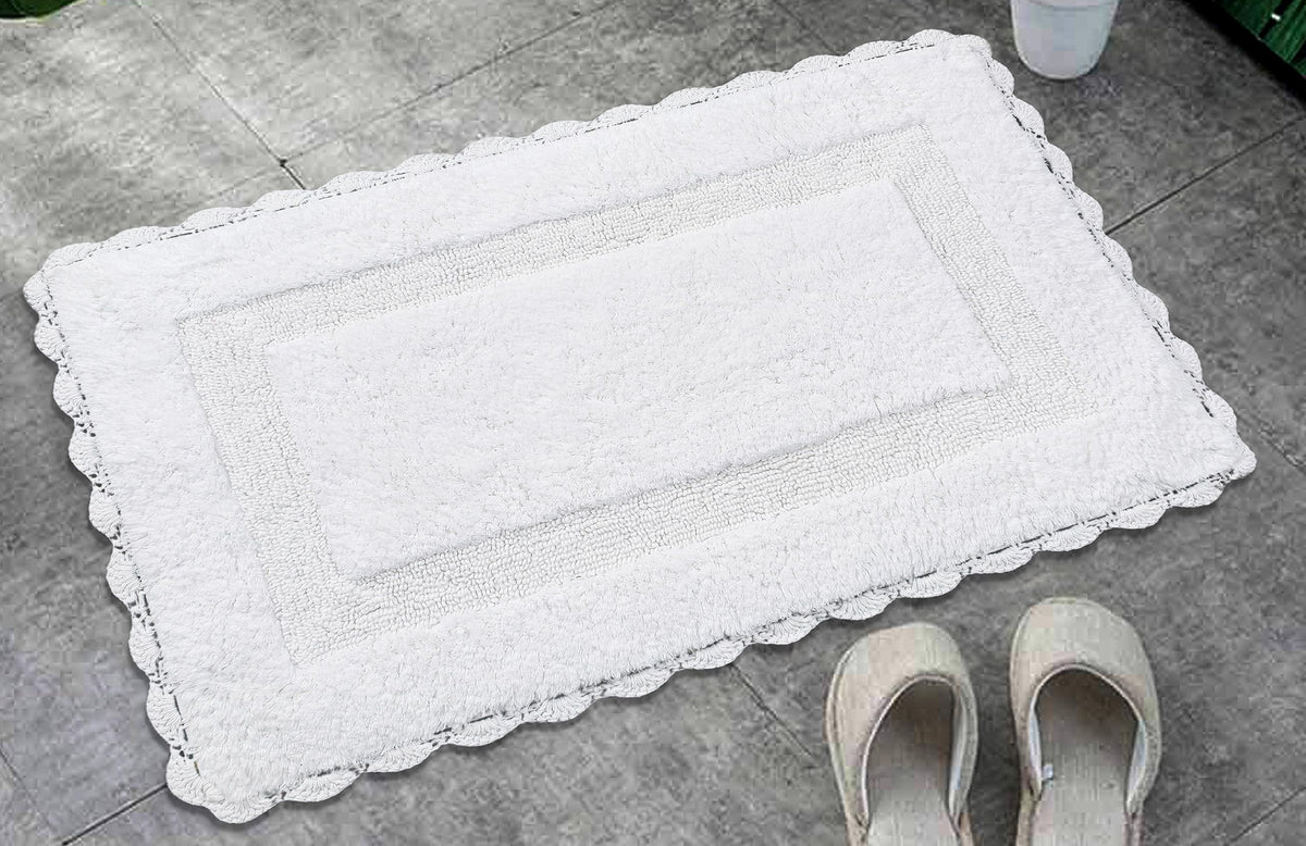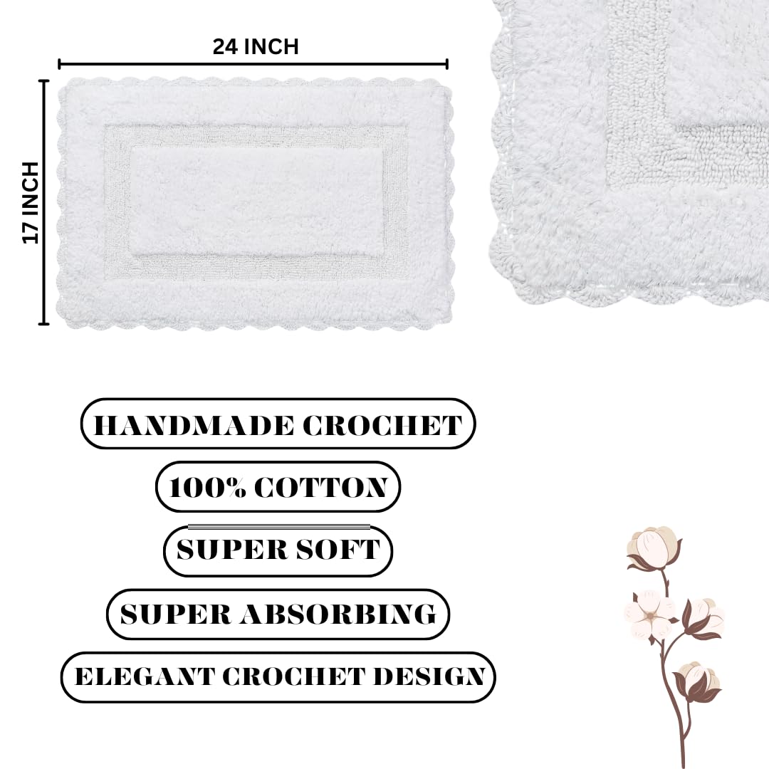 Bath Mat Rug 17''X24'' White, 100% Pure Cotton, Super Soft Bath Rugs, Plush & Absorbent, Hand Tufted Heavy Weight Construction,