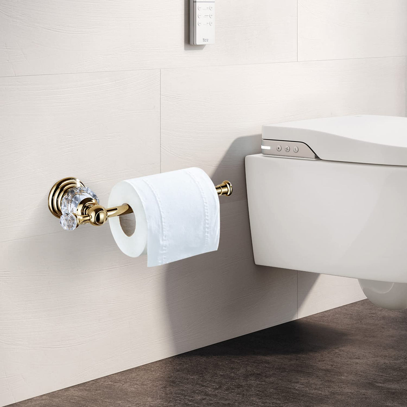 Bathsir Crystal Toilet Paper Holder, Gold Toilet Roll Holder Modern Bathroom Accessories Zinc Alloy Tissue Hanger Wall Mounted