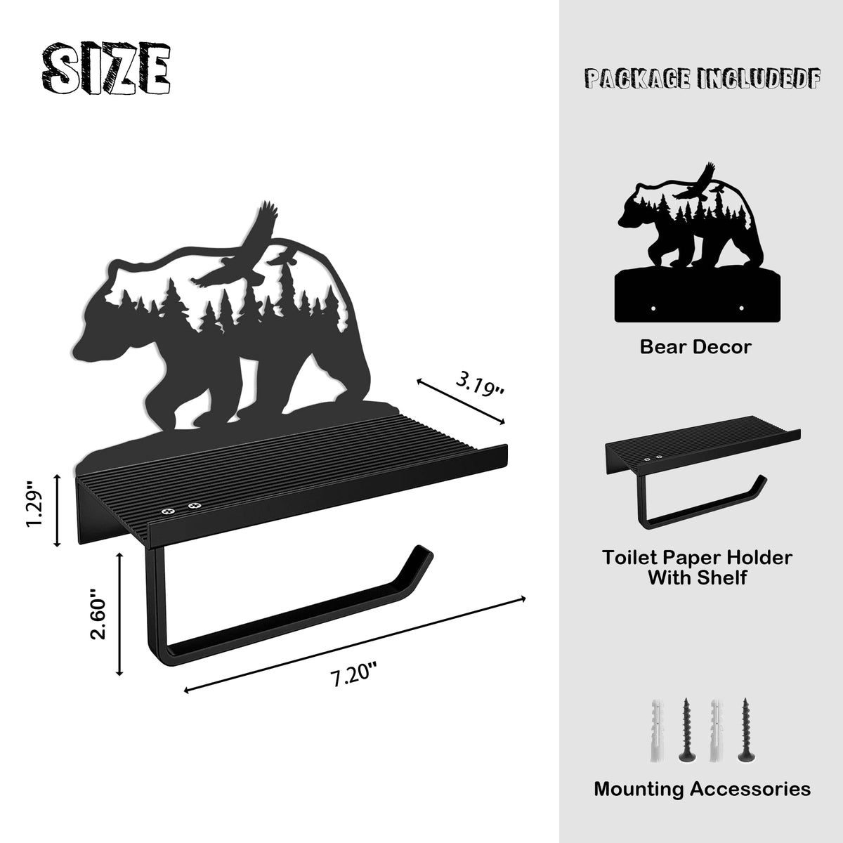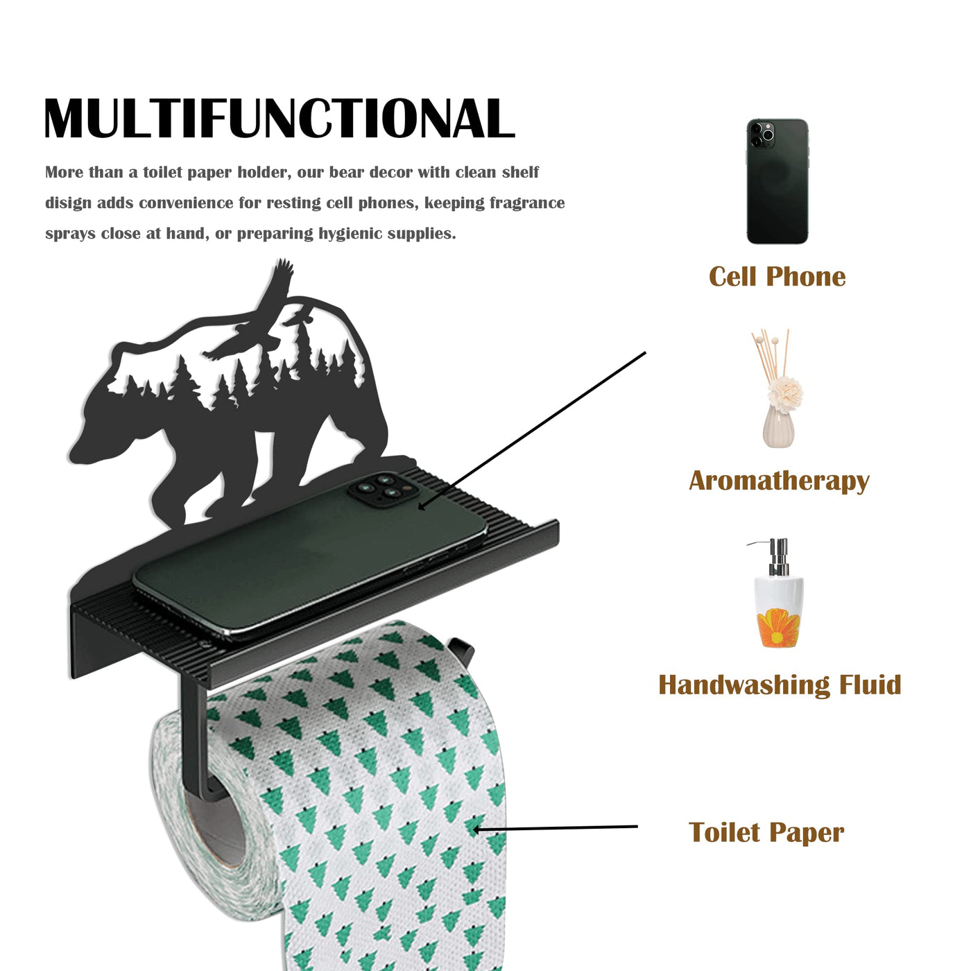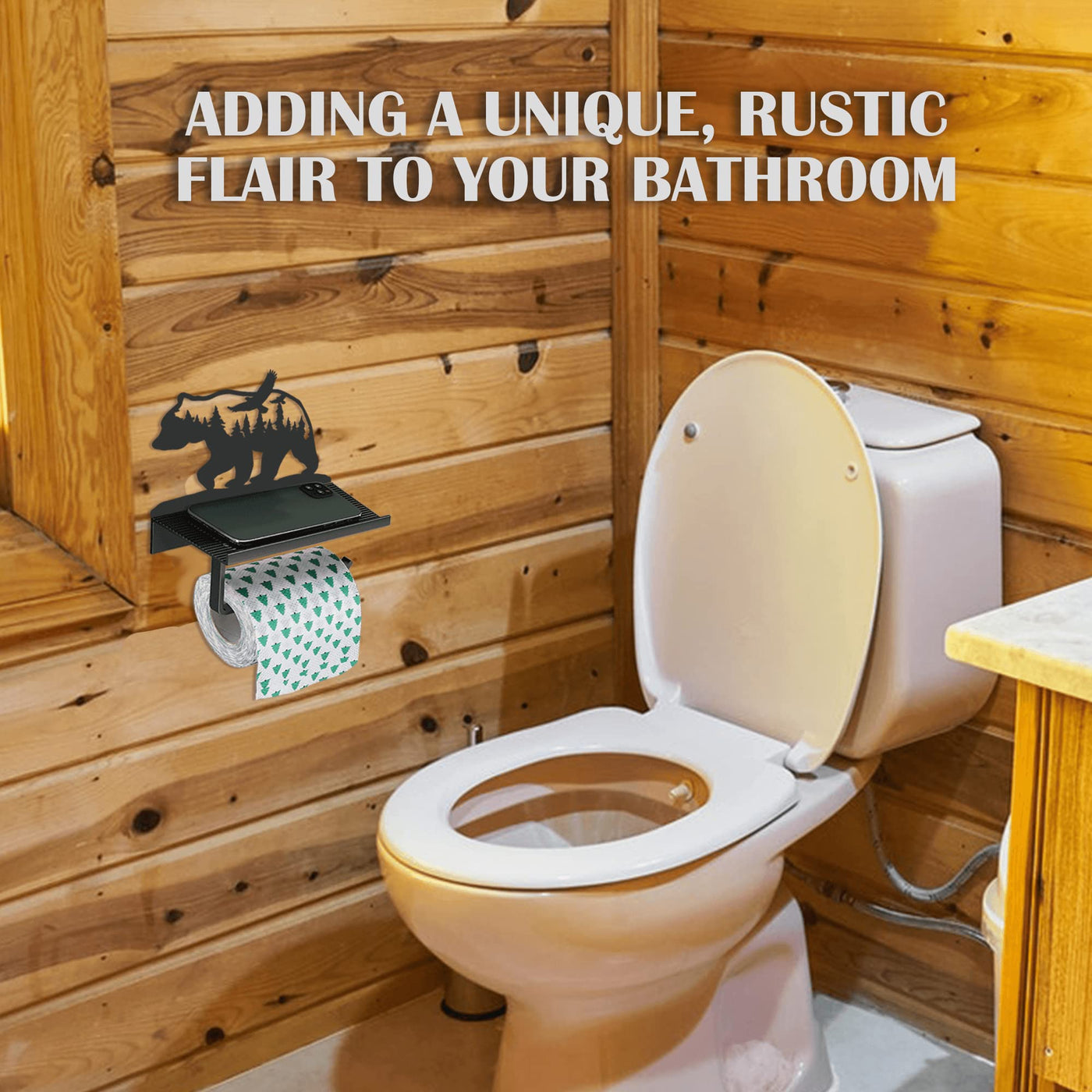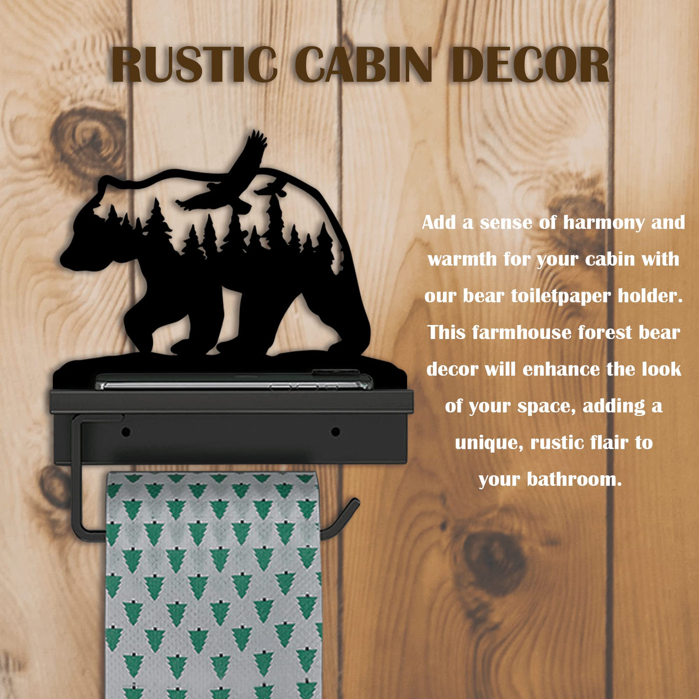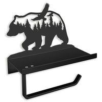 Bear Toilet Paper Holder With Shelf,Rustic Cabin Bathroom Decor, Farmhouse Forest Theme Kitchen Bathroom Decor, Black (A)