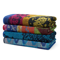 Q: How do I care for these cotton towels to maintain their quality?A: To maintain the quality of your cotton towels, it's recommended to machine wash them in cold water and tumble dry on low heat. Avoid using bleach to preserve the vibrant colors.