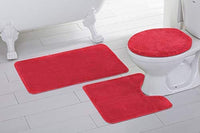 Better Home Style 3 Piece Bathroom Rug Set Bath Rug, Contour Mat, & Lid Cover Non-Slip With Rubber Backing Solid Color (Red)