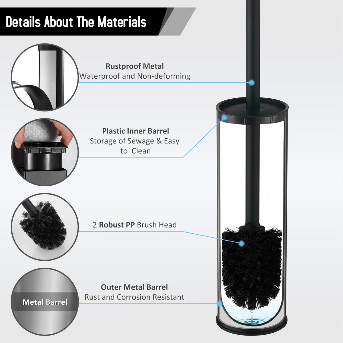 Toilet Brush Color: Black Product Name: Black Toilet Brush Holder,Stainless Steel Toilet Brush, Round Freestanding Toilet Brush, Toilet Bowl Brush And Holder, Matte Black Toilet Brush And Holder Toilet Brush Size:L 3.1 ' X D 3.1 ' X H 15.7 '(80 Mm X 80 Mm X 400 Mm) Toilet Brush&Nbsp; Weight: 3.31 Lbs Toilet Brush Material:Stainless Steel+Pp Installation Method: Without Drilling Required Applicable Places: Black Toilet Brush For Bathroom