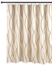 Biscaynebay Extra Long Textured Fabric Shower Curtain 72 Inch By 72 Inch, Gold Printed Striped Linen Modern Hotel Luxury Quality