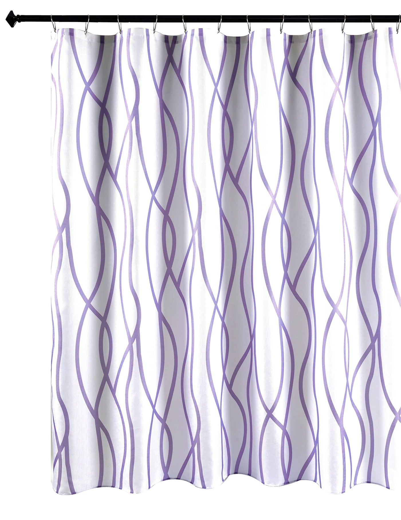 Biscaynebay Extra Long Textured Fabric Shower Curtain 72 W X 84 L, Lavender Printed Striped Linen Modern Hotel Luxury Quality Cl