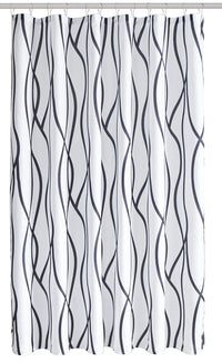 Biscaynebay Textured Fabric Shower Curtain 72 Inches By 72 Inches, Black Printed Striped Linen Modern Hotel Luxury Quality Cloth