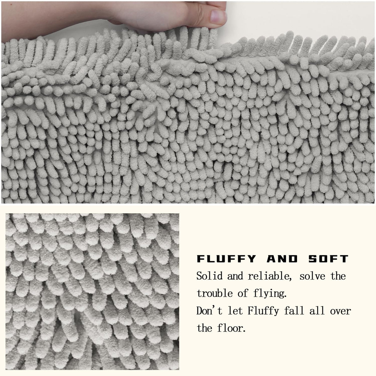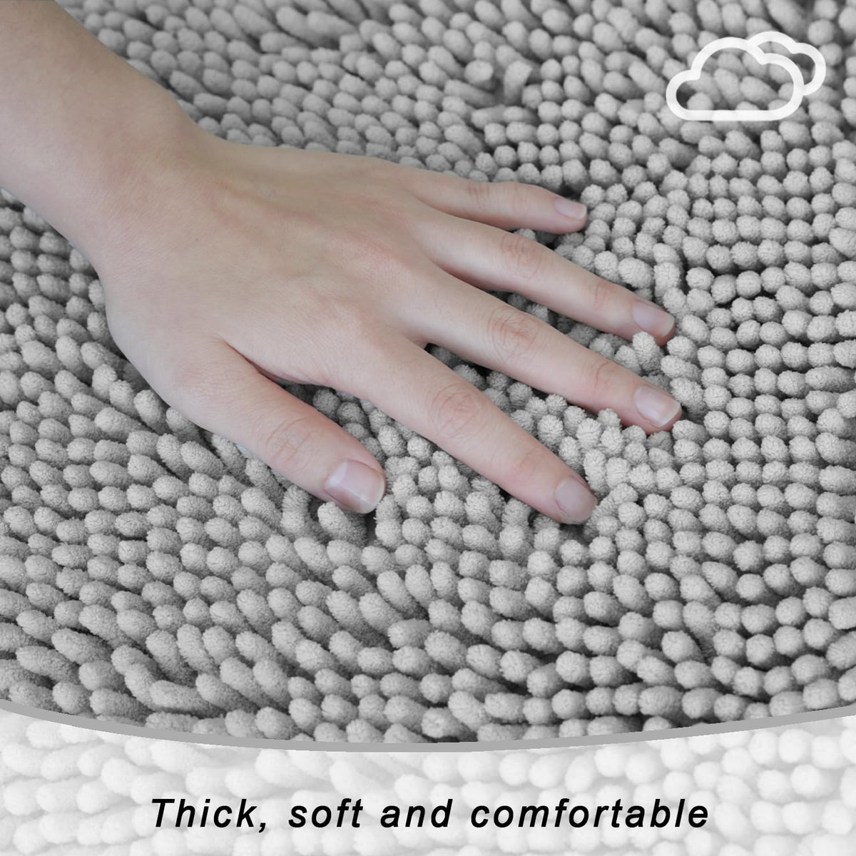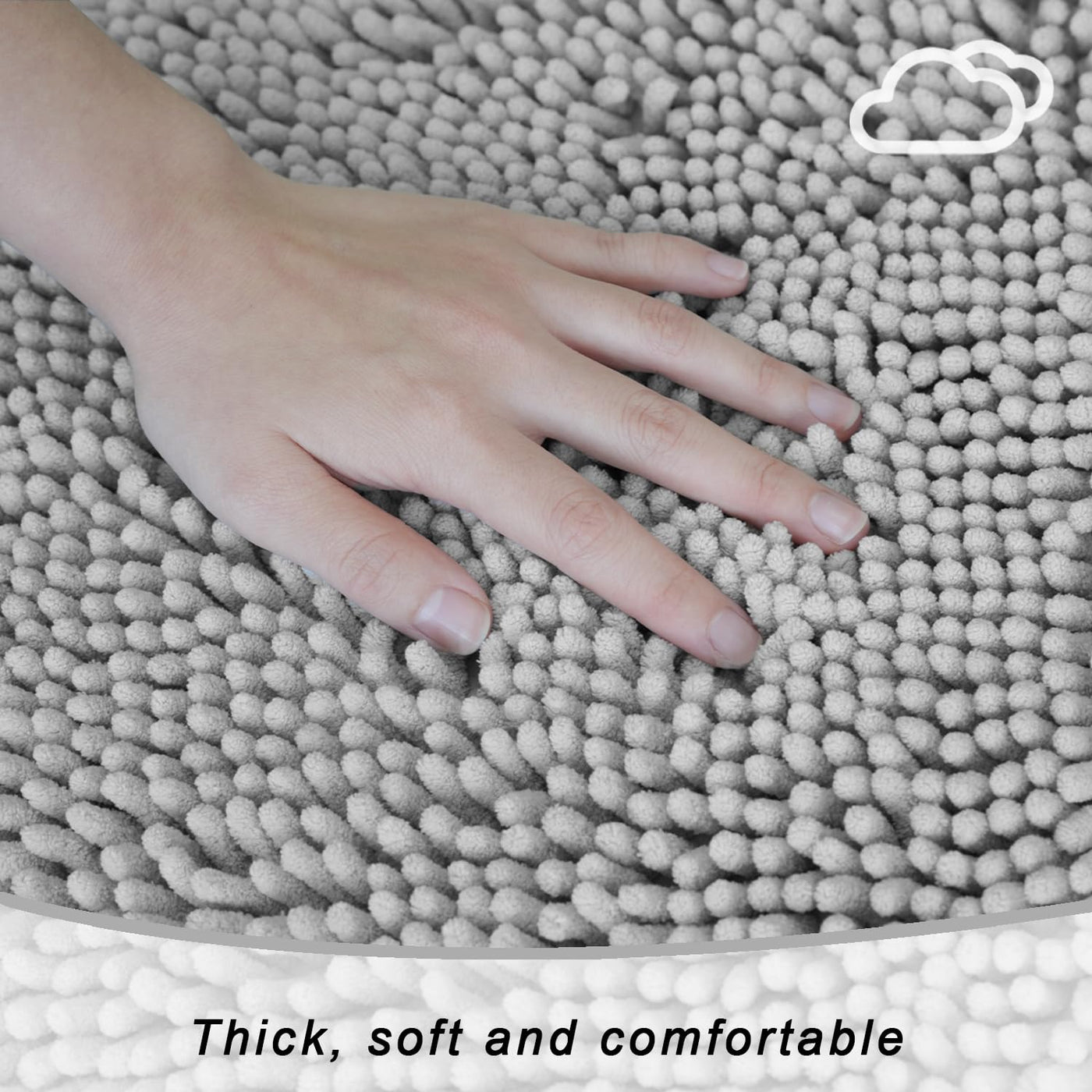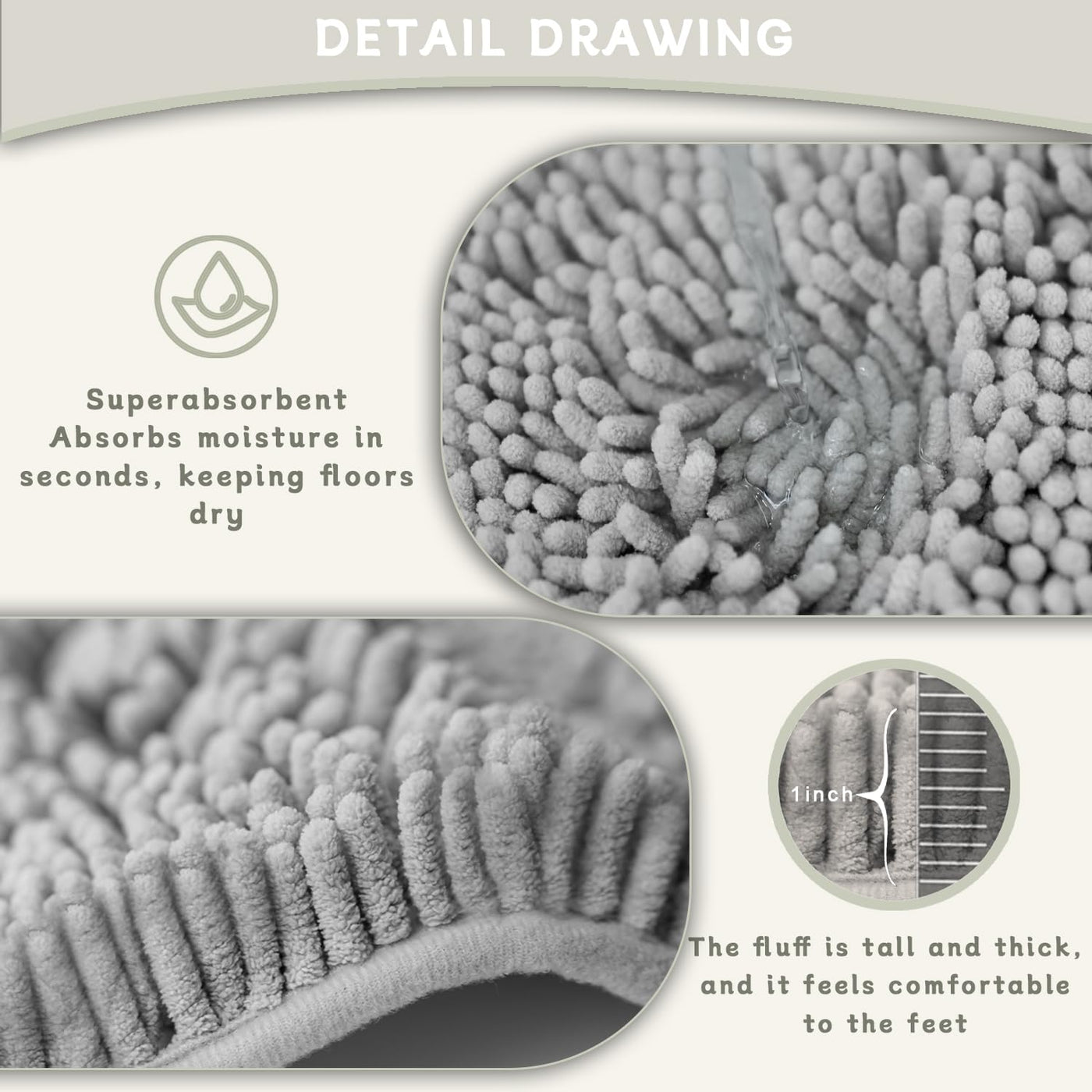 Q: What materials are the BOANKODU bathroom rugs made from?A: The rugs are made from fluffy plush chenille fibers that offer a soft, cloud-like feel underfoot, while the high-quality PVC bottom ensures durability and longevity.