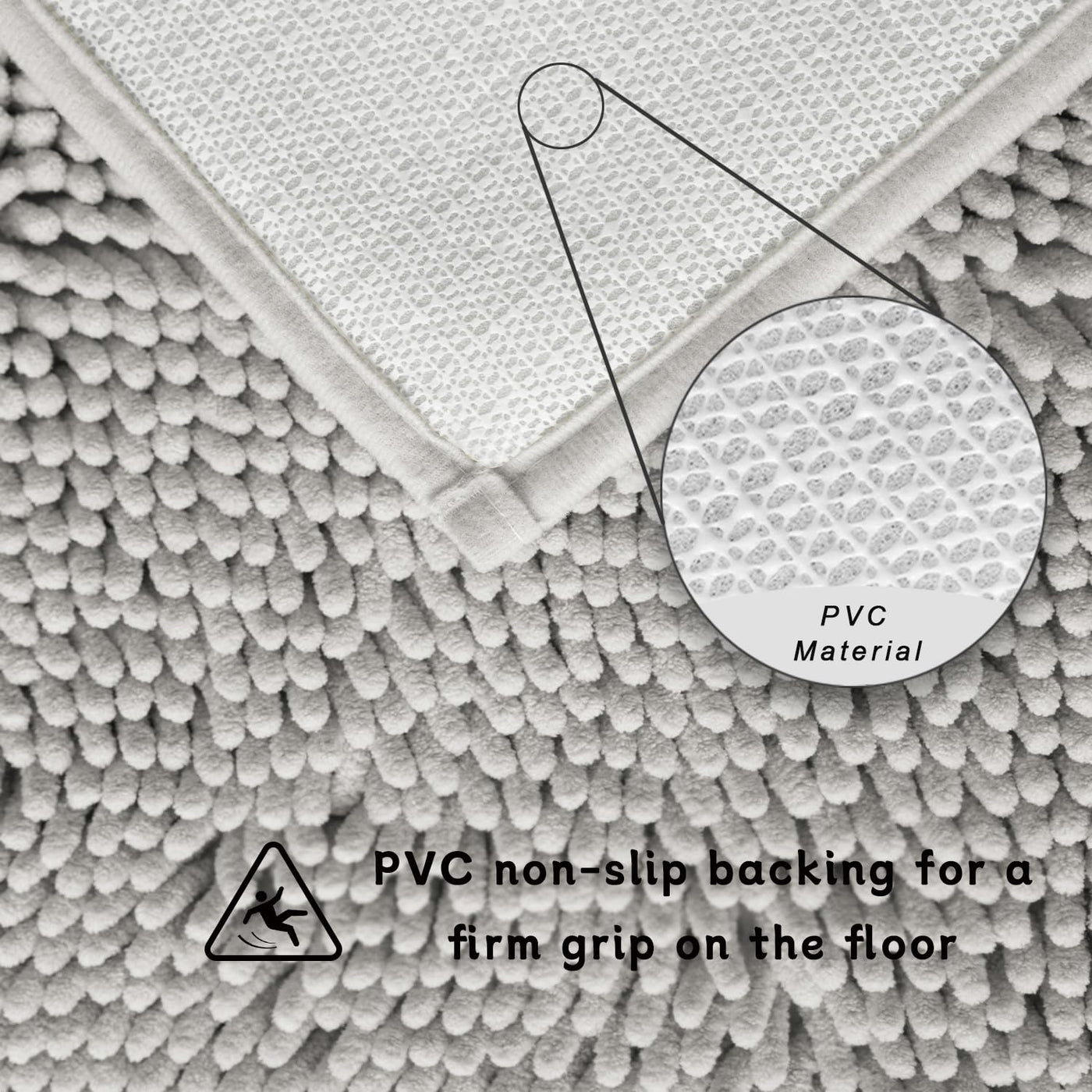 Q: How do the non-skid features of these rugs work?A: The bathroom rugs feature a strong PVC underside that provides excellent grip on the floor, preventing slips and ensuring safety. However, it is important to place them on dry surfaces for optimal performance.