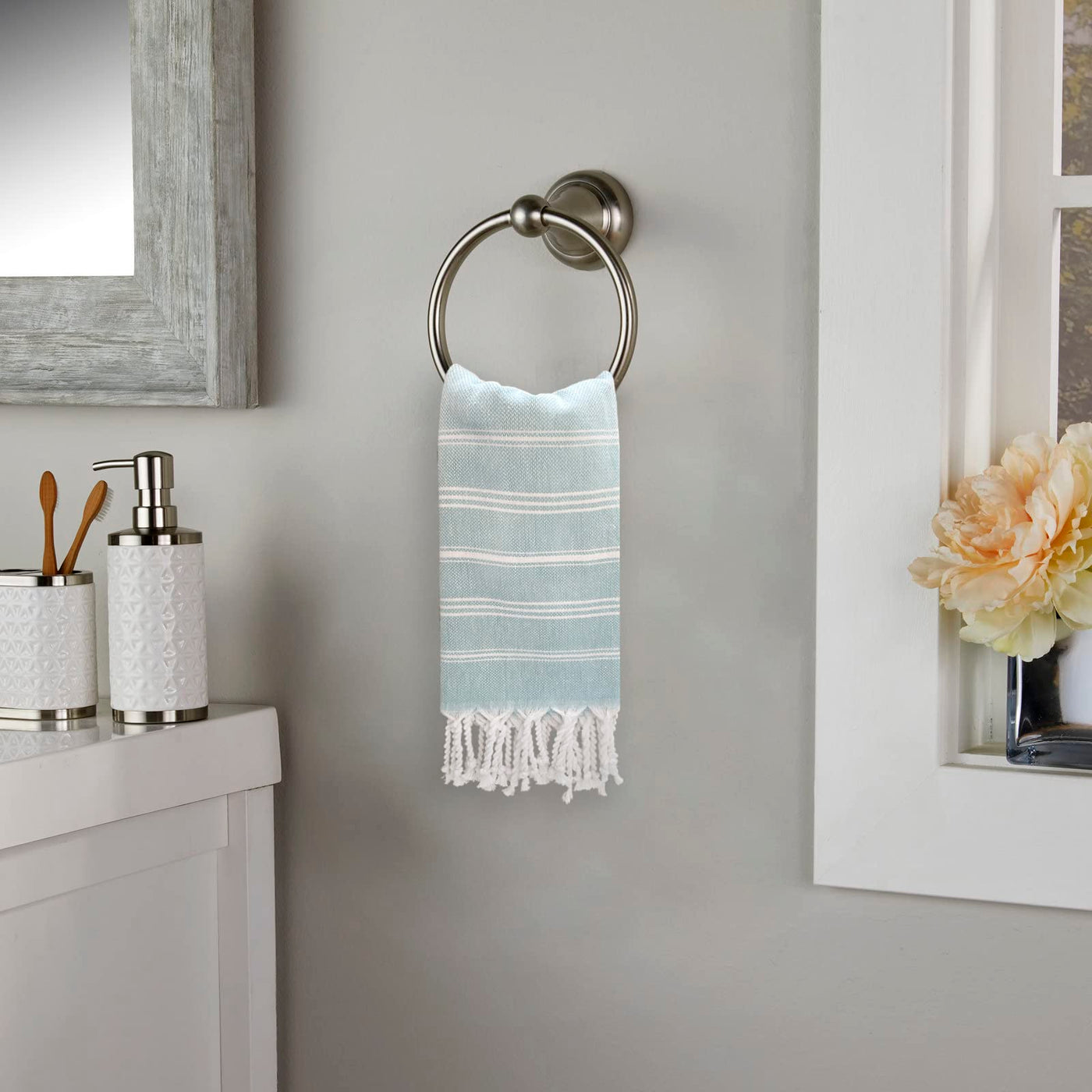 Q: Can these hand towels be used for purposes other than drying hands?A: Yes, these versatile Turkish hand towels can be used in various ways, including as face towels, hair towels, gym towels, or even as decorative kitchen towels.