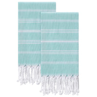 Cabanana Cotton Turkish Hand Towel - Set Of 2 | Boho Kitchen Tea Towels, 30 X 20 Inches Thin Decorative Bathroom Towel (Aqua)