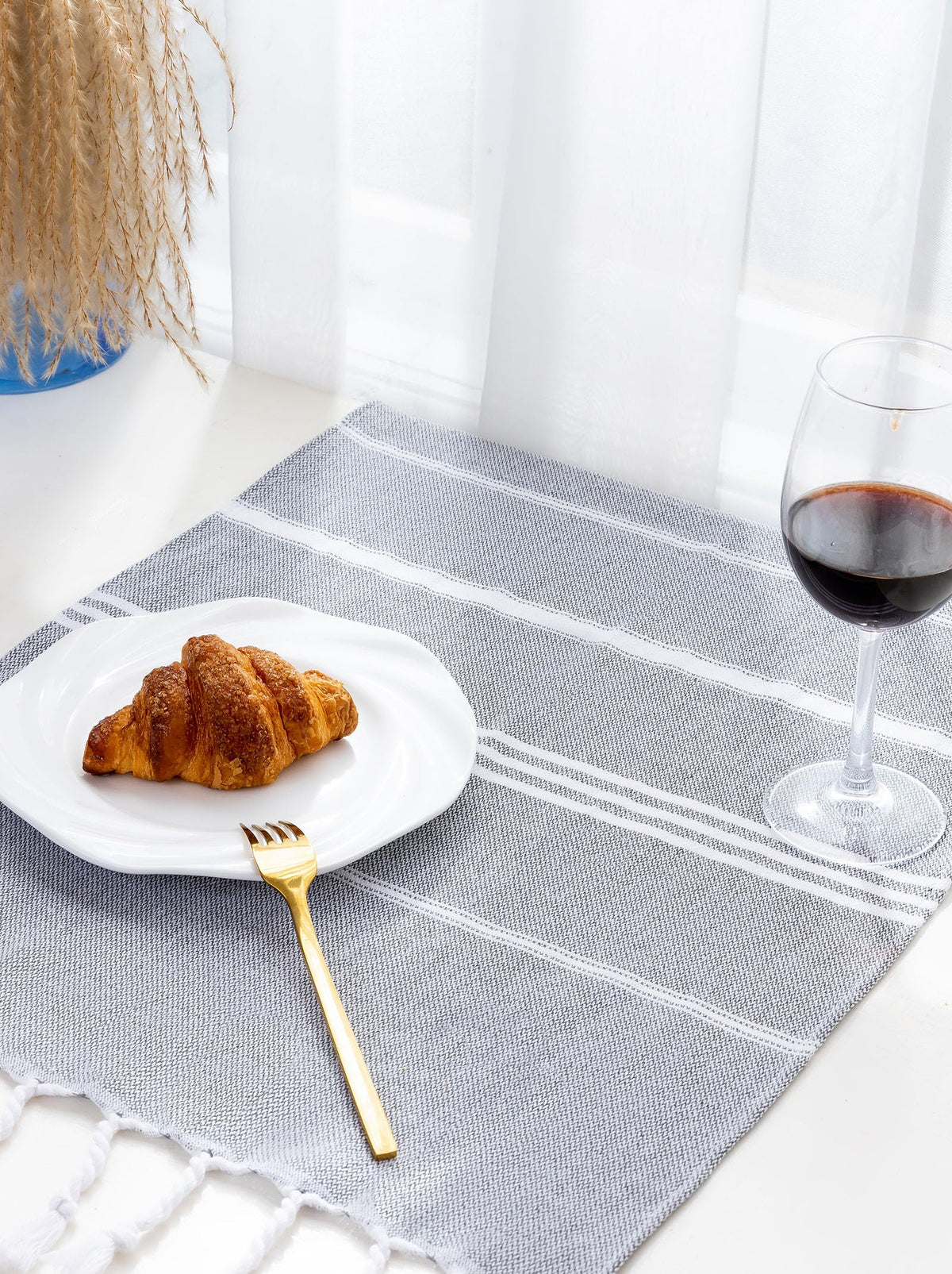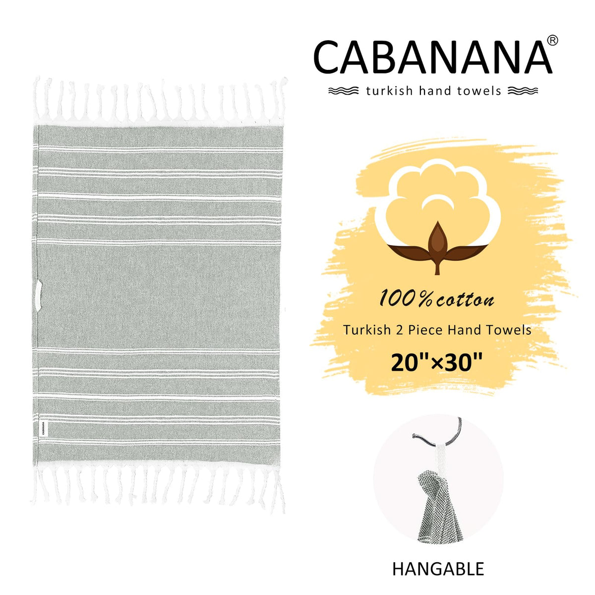 Cabanana Cotton Turkish Hand Towel - Set Of 2 | Boho Kitchen Tea Towels, 30 X 20 Inches Thin Decorative Bathroom Towel (Grey)