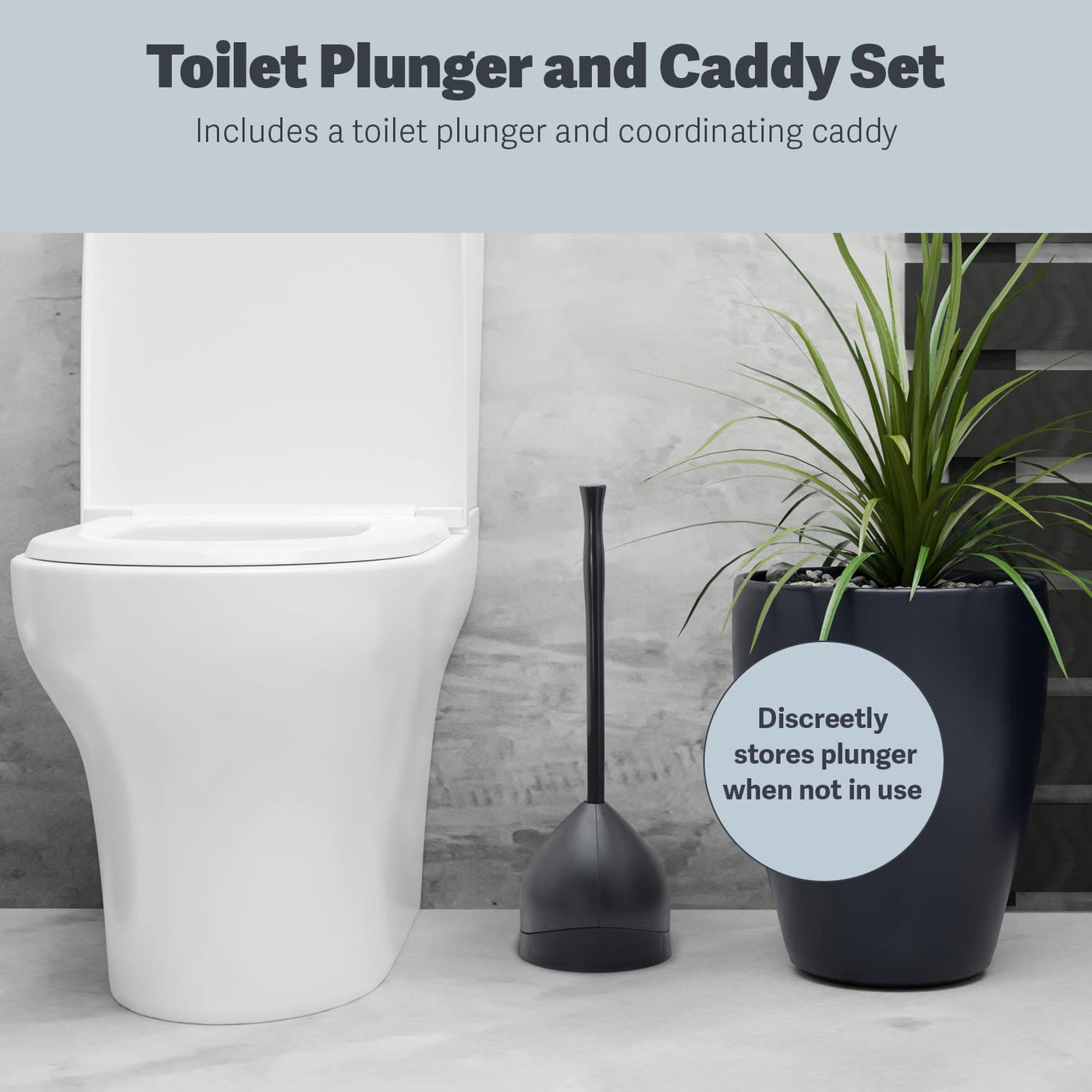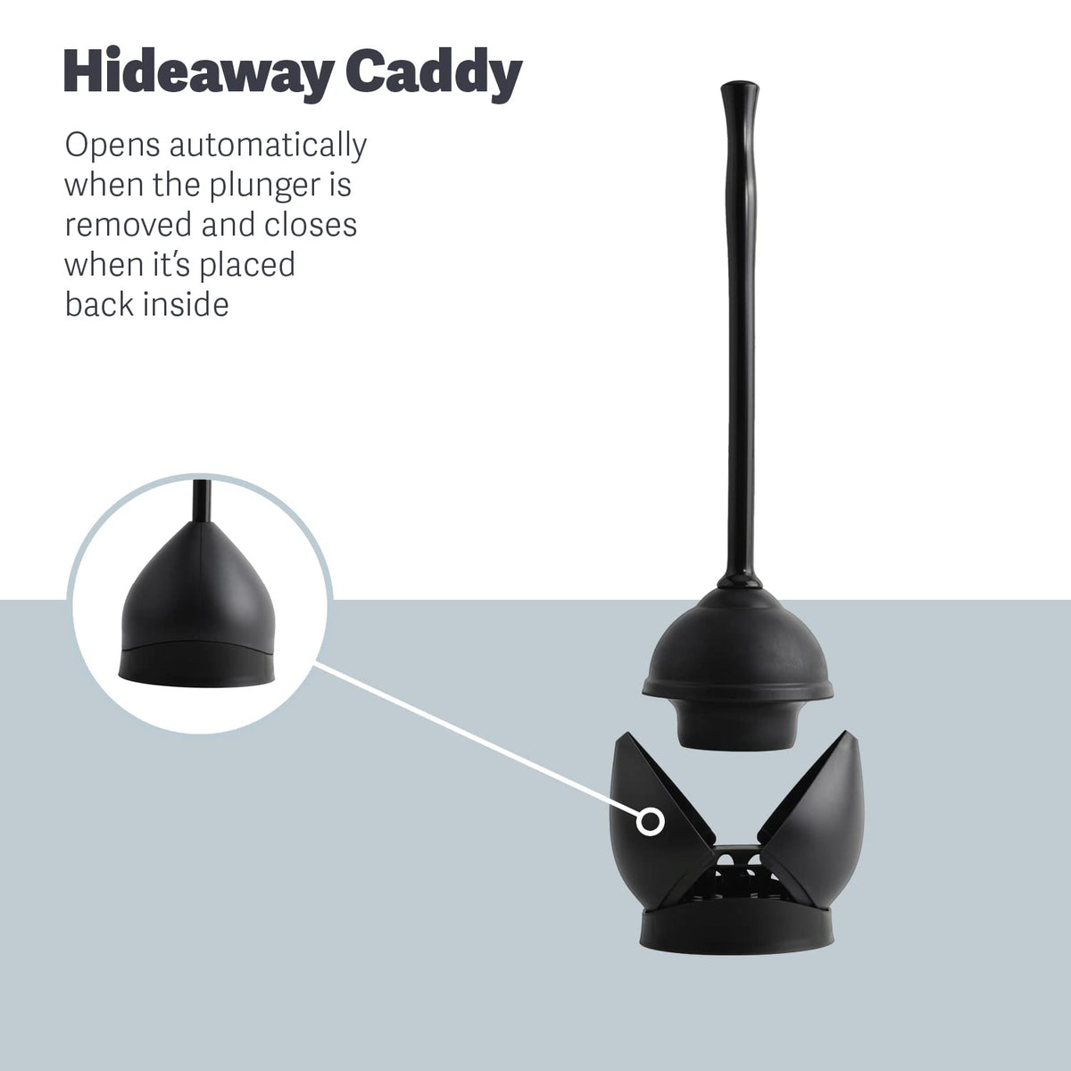 Casabella Plunger With Hideaway Caddy - Toilet Plunger And Caddy Combo, Tackles Tough Clogs, Hideaway Caddy, Internal Drip Tray,