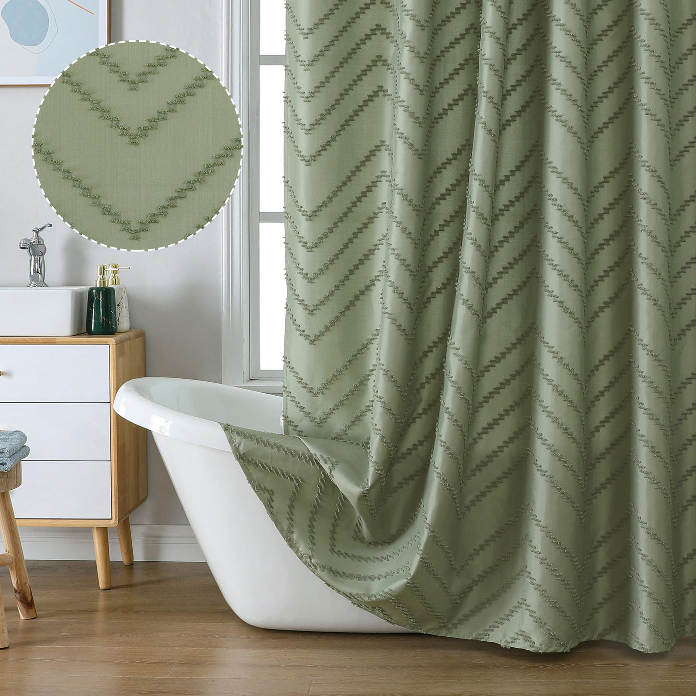 Chyhomenyc Chevron Extra Long Light Sage Green Boho Shower Curtain Set 72X78 Inches, Fabric Shower Curtain Modern Farmhouse Chic