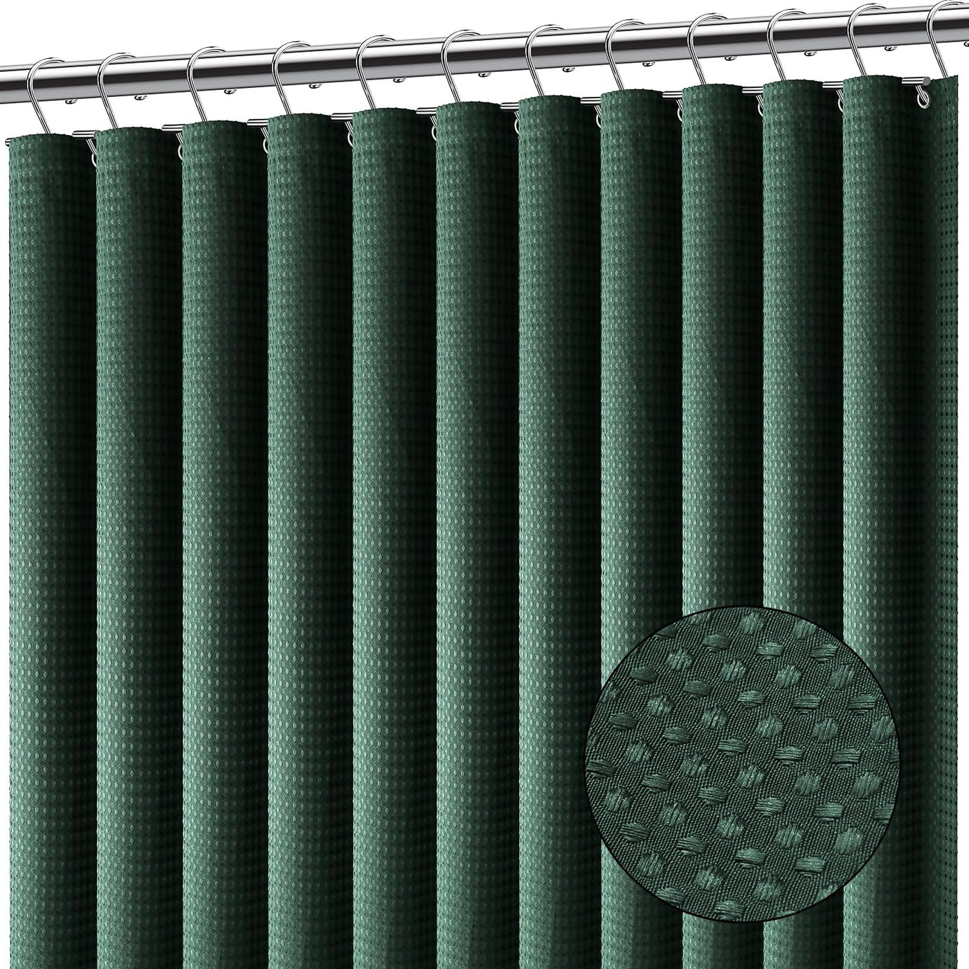 Clara Clark Hunter Green Shower Curtain - Waterproof Shower Curtains For Bathroom, Waffle Shower Curtain Fabric, Thick Bathroom
