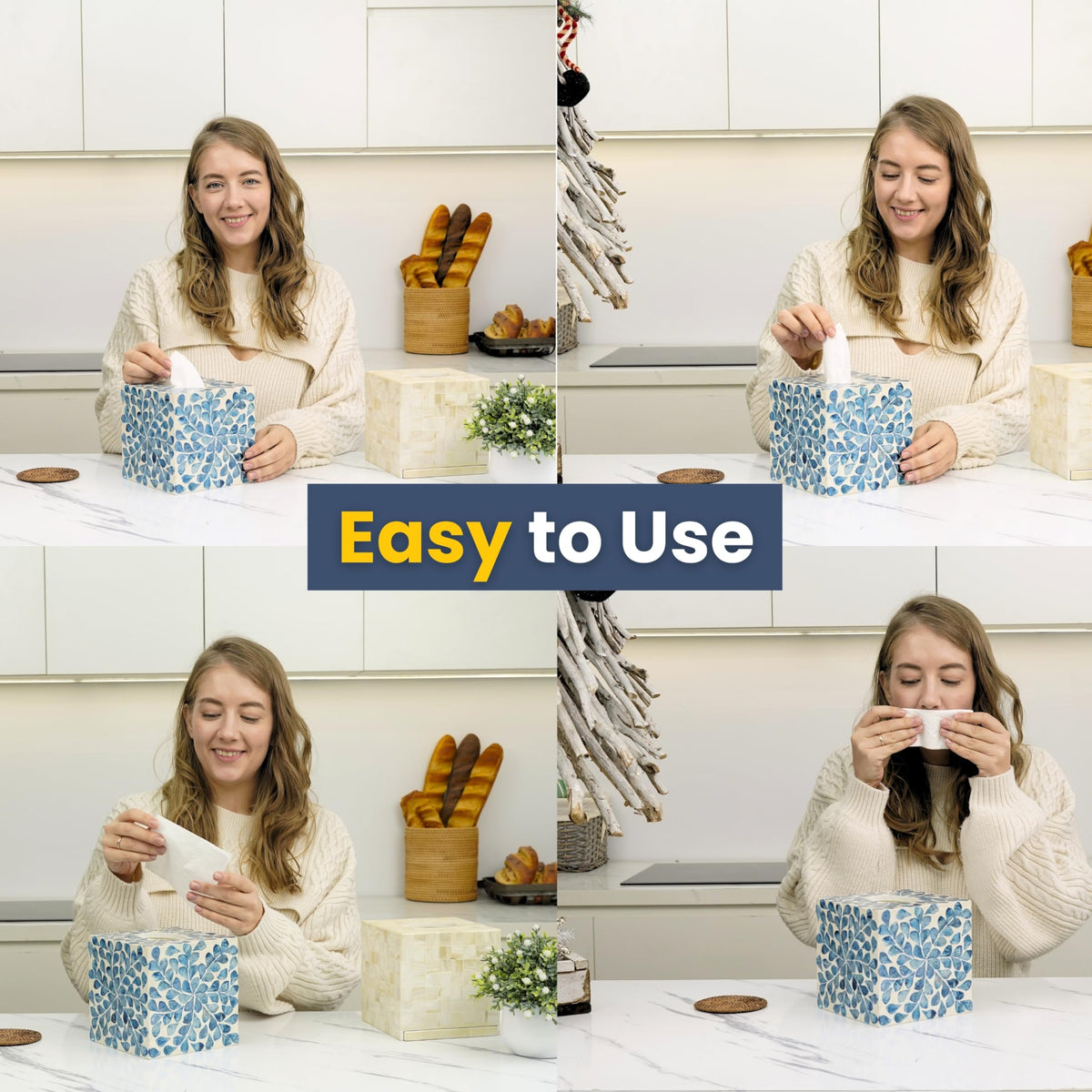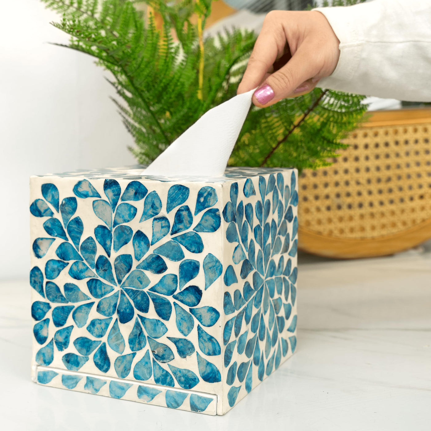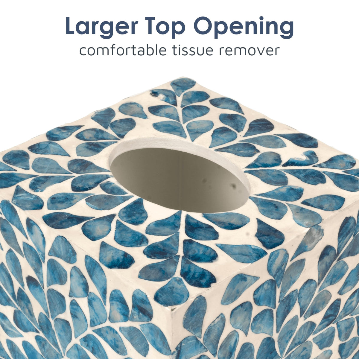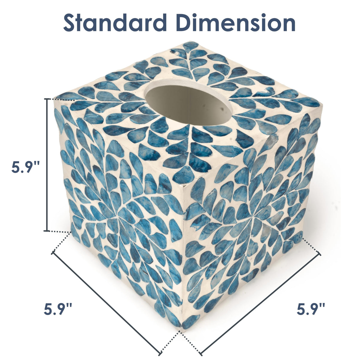 Claynix Tissue Box Cover - Mosaic Mother Of Pearl Inlay Cube - Napkin Holder Square - Toilet Paper Storage - Decorative Organize