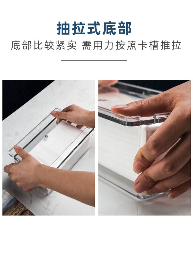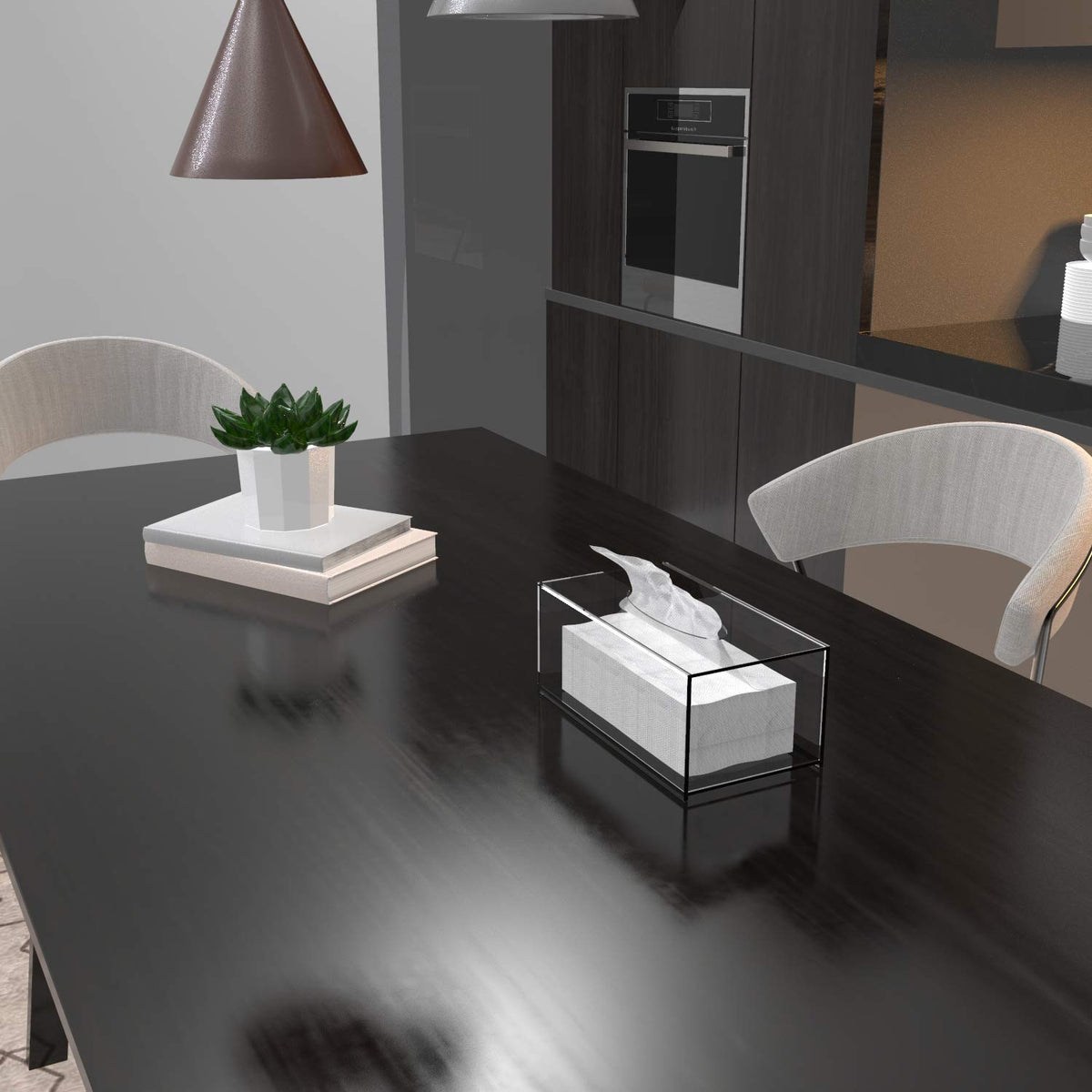 Q: Is the tissue box suitable for different room decors?A: Yes, its clear and modern design allows it to blend seamlessly with any decor in bedrooms, bathrooms, living rooms, kitchens, and more.