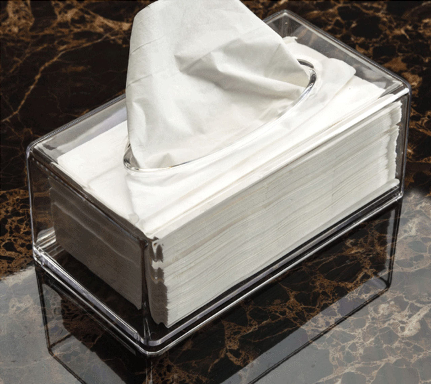 Q: What materials is the tissue box made from?A: The tissue box holder is made from sturdy acrylic, which is durable and allows you to see the contents easily, ensuring you know when to refill.