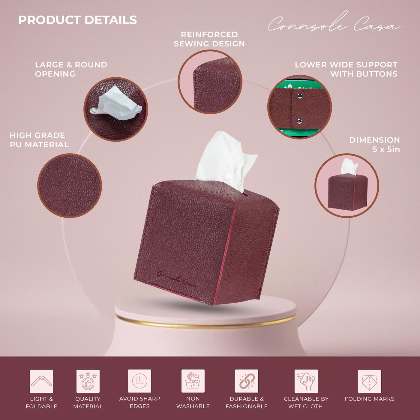 Transform Your Tissue Box Experience With The Connsole Casa Leather Tissue Box Holder. This Stylish And Durable Tissue Box Holder Is The Perfect Accessory For Any Home, Office, Or Car. Made From High-Quality Pu Leather, It Ensures That Your Kleenex Box Stays Secure While Adding A Touch Of Elegance To Your Space. The Tissue Box Cover Is Designed To Fit Most Standard Kleenex Tissues Cube Sizes, Making It A Versatile Choice For Any Setting. Our Tissue Box Offers Easy Refilling With A Convenient Bottom Snap Support, Ensuring Your Tissues Box Remains Neat And Organized. The Sleek Design Of The Kleenex Cube Makes It A Stylish Addition To Any Room, Enhancing Your Decor With Its Modern Aesthetic. Whether You Use It As A Tissue Box Holder Or A Decorative Piece, This Tissue Box Cover Is Designed To Meet Your Needs And Withstand Daily Use. Perfect For Cars, Our Tissue Box Fits Snugly, Ensuring You Have Tissues Box On Hand Whenever You Need Them. It'S A Family-Friendly Solution That Keeps Your Tissue Cube Organized And Within Reach. Plus, It Makes A Great Gift Idea, Adding A Practical And Stylish Touch To Any Home Or Office. Upgrade Your Tissue Box Experience With The Connsole Casa Leather Tissue Box Holder And Enjoy The Convenience And Elegance It Brings To Your Space.