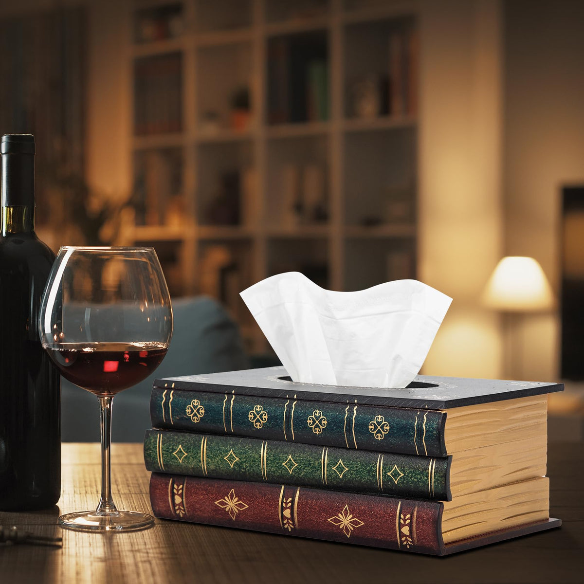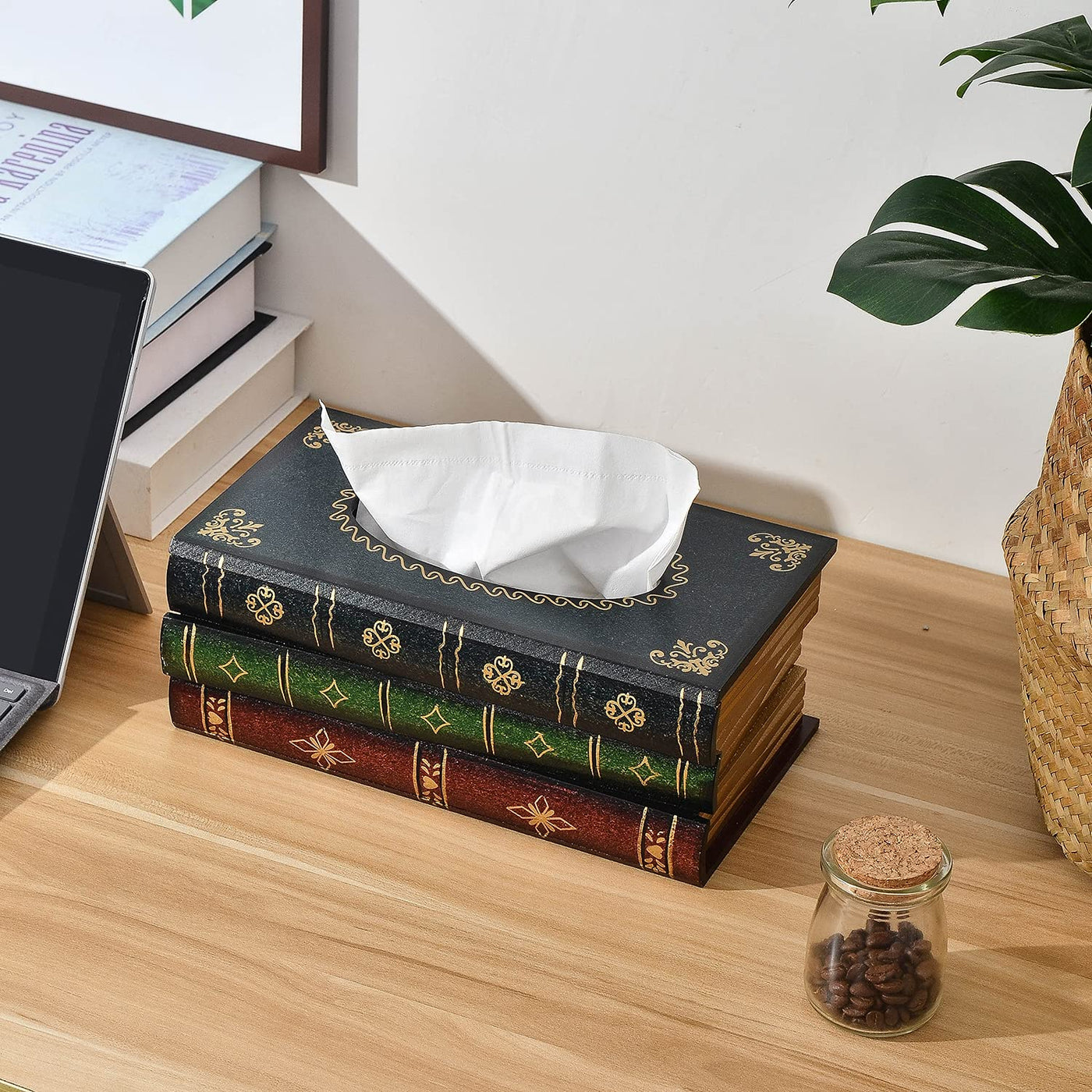 Crafted Classical Retro Wooden Antique Book Tissue Box Cover Rectangular Tissue Holder Dispenser Paper Cover Case Napkin Holder