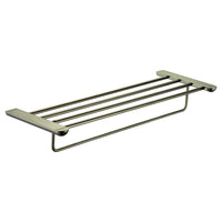 Q: What are the dimensions of the Dawn towel shelf?A: The Dawn 95010202BN towel shelf measures 22.72 inches in length and 5.98 inches in width, providing ample space for towels while fitting well in various bathroom layouts.