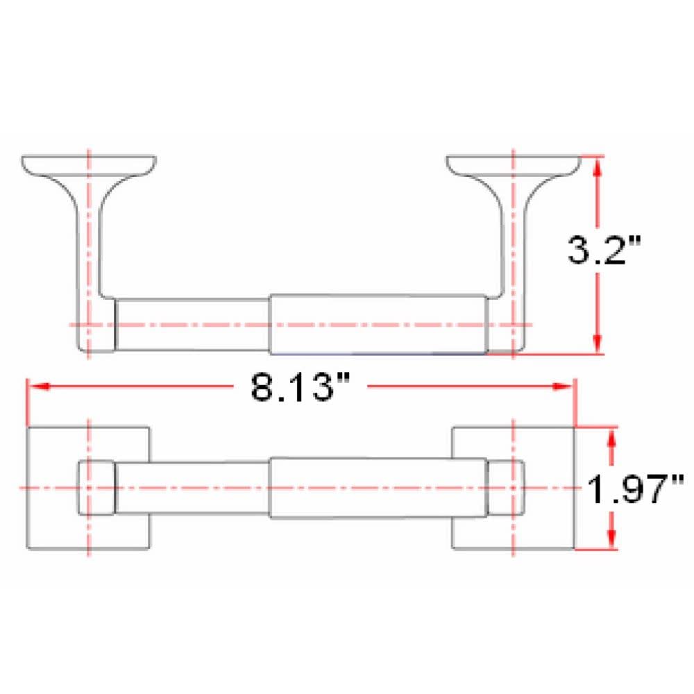 Q: What are the dimensions of the Design House Millbridge Toilet Paper Holder?A: The toilet paper holder measures 8.13 inches in length and 1.97 inches in width, making it a compact and functional addition to your bathroom.
