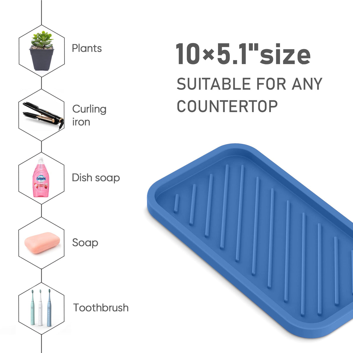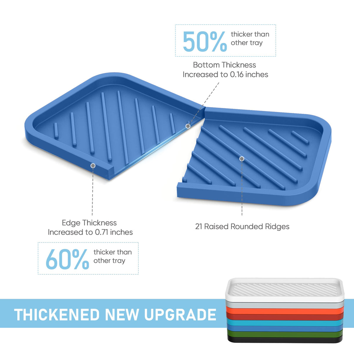 Kitchen Sink Organizer Tray Can Store Various Small Items In The Kitchen, Bathroom And Bedroom,Keep The Counter Neat And Dry,Make Enough Space On The Counter To Store Other Items,And Protect The Counter Surface From Heat Damage.It Is Made Of Silicone,Which Is Soft, Waterproof, Heat-Resistant, Flexible, Non-Slip And Easy To Clean And Store, And Reusable.