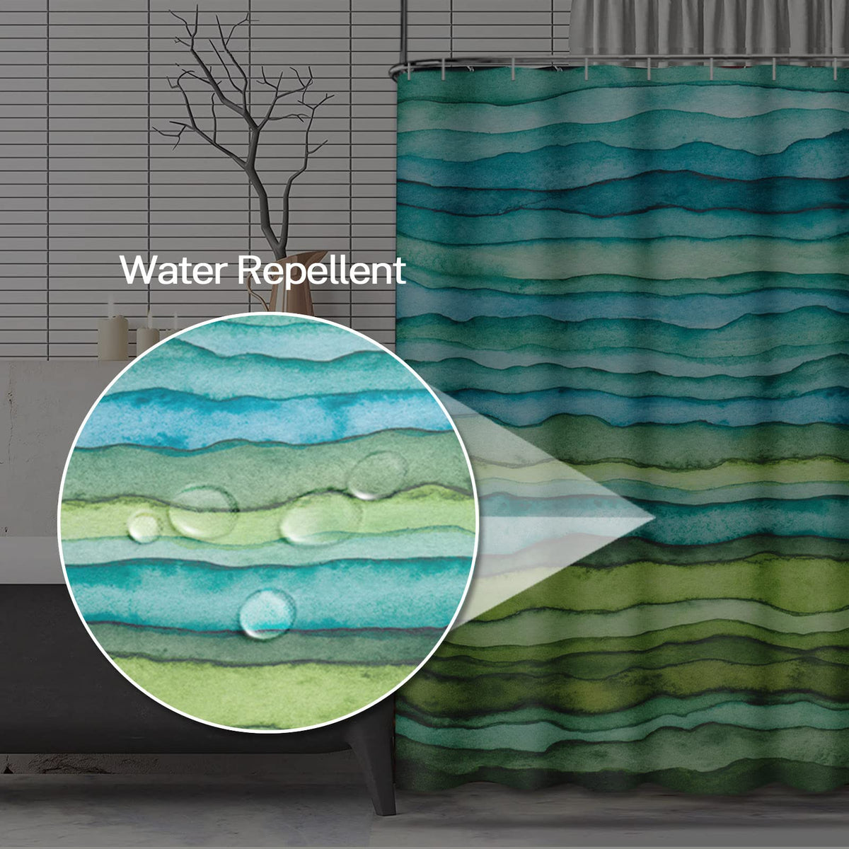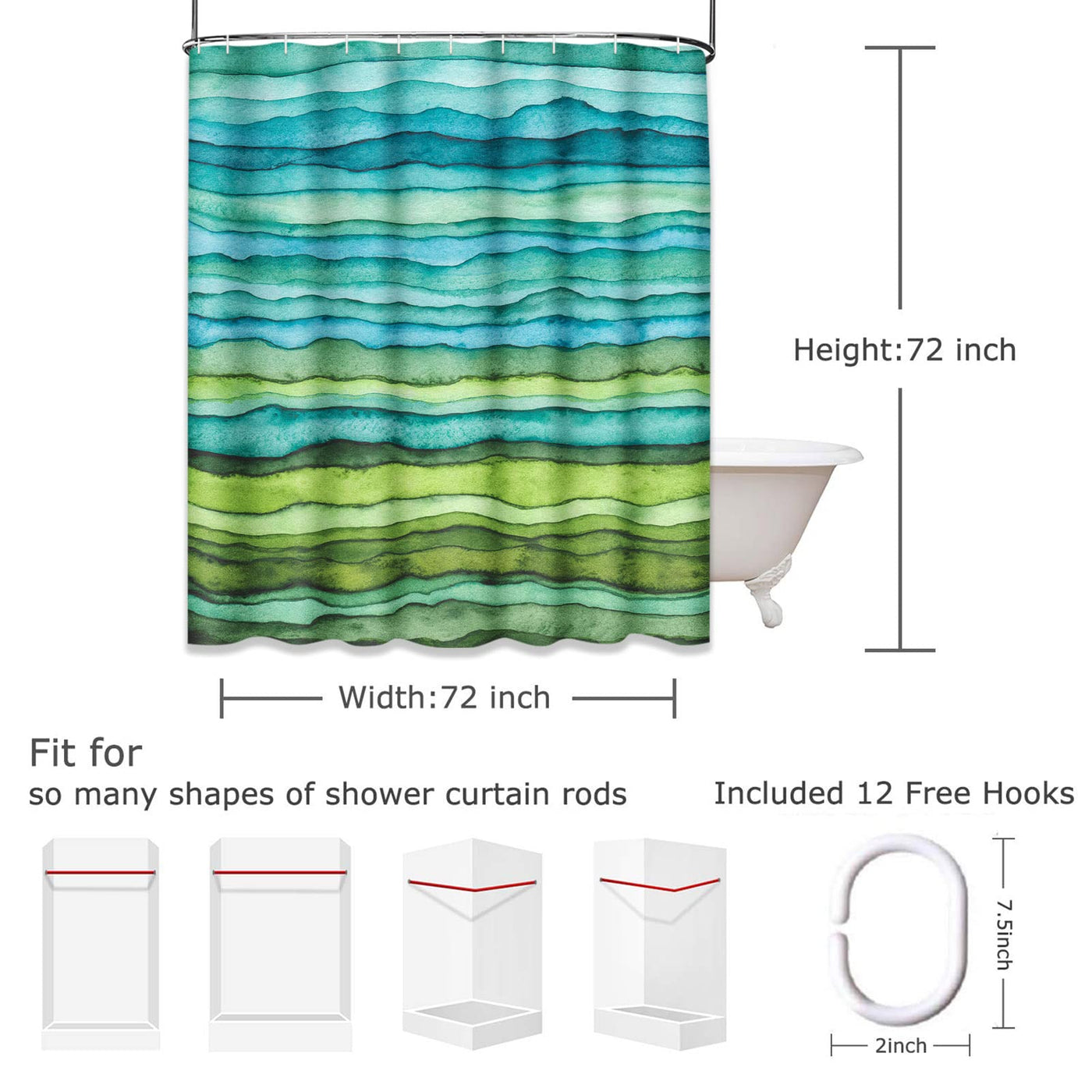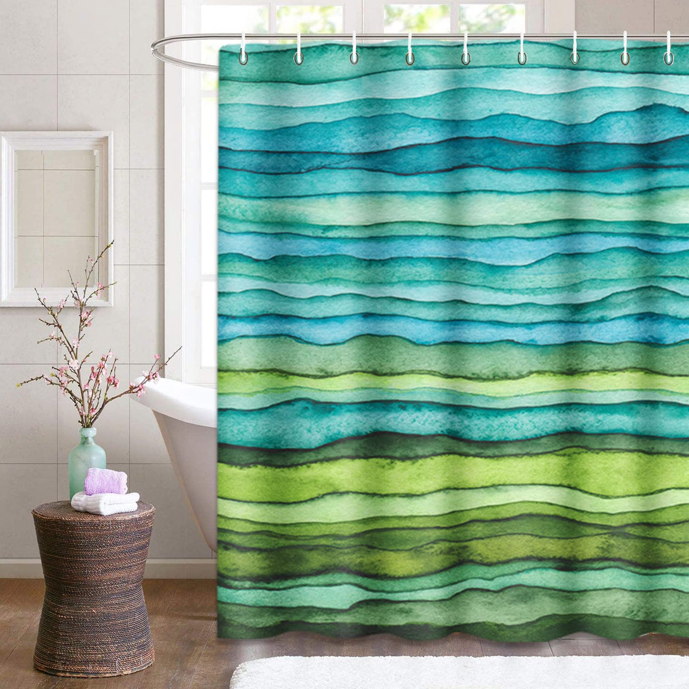 Emvency Shower Curtain Abstract Bright Blue And Green Waves Stripped Watercolor Brush Drawn Waterproof Polyester Fabric 72 X 72