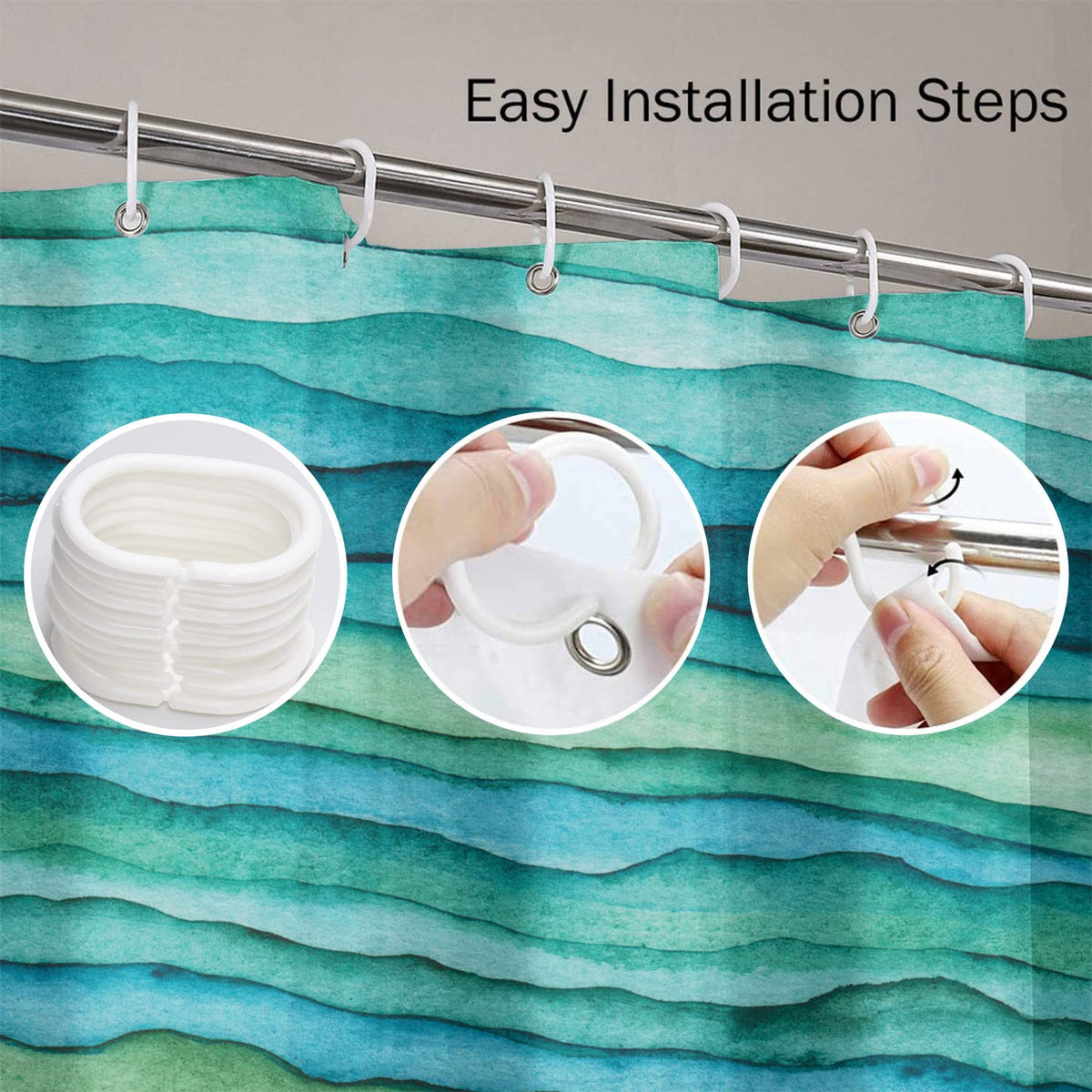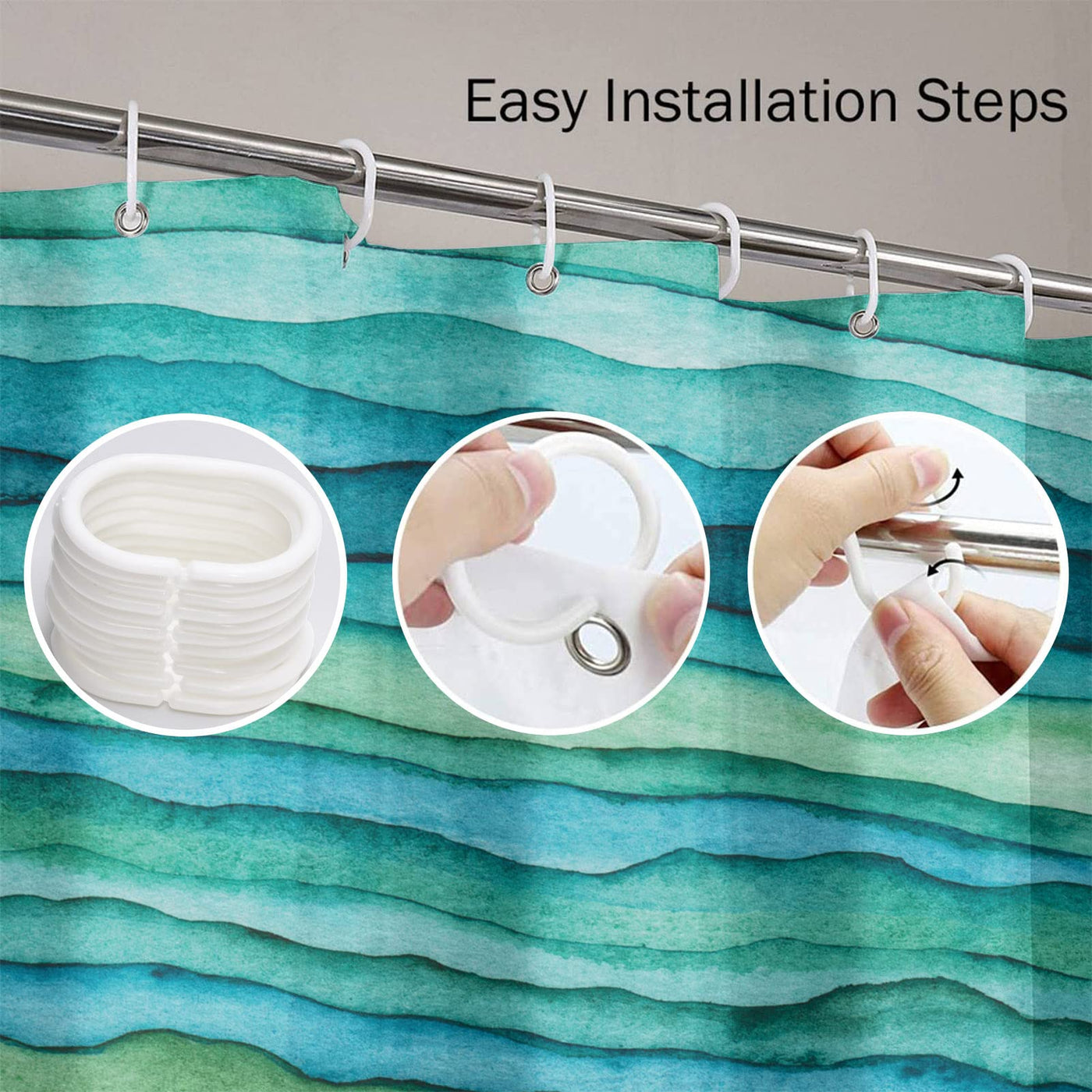 Q: Does the shower curtain come with hooks for installation?A: Yes, the Emvency Shower Curtain includes 12 free plastic hooks, making installation quick and easy on your existing shower rod.