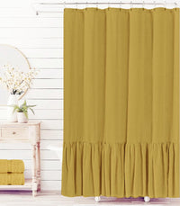 Felisa Farmhouse Shower Curtain With A Ruffle Hem, Linen Blend Shower Curtain For Bathroom,Mustard,72'X72'