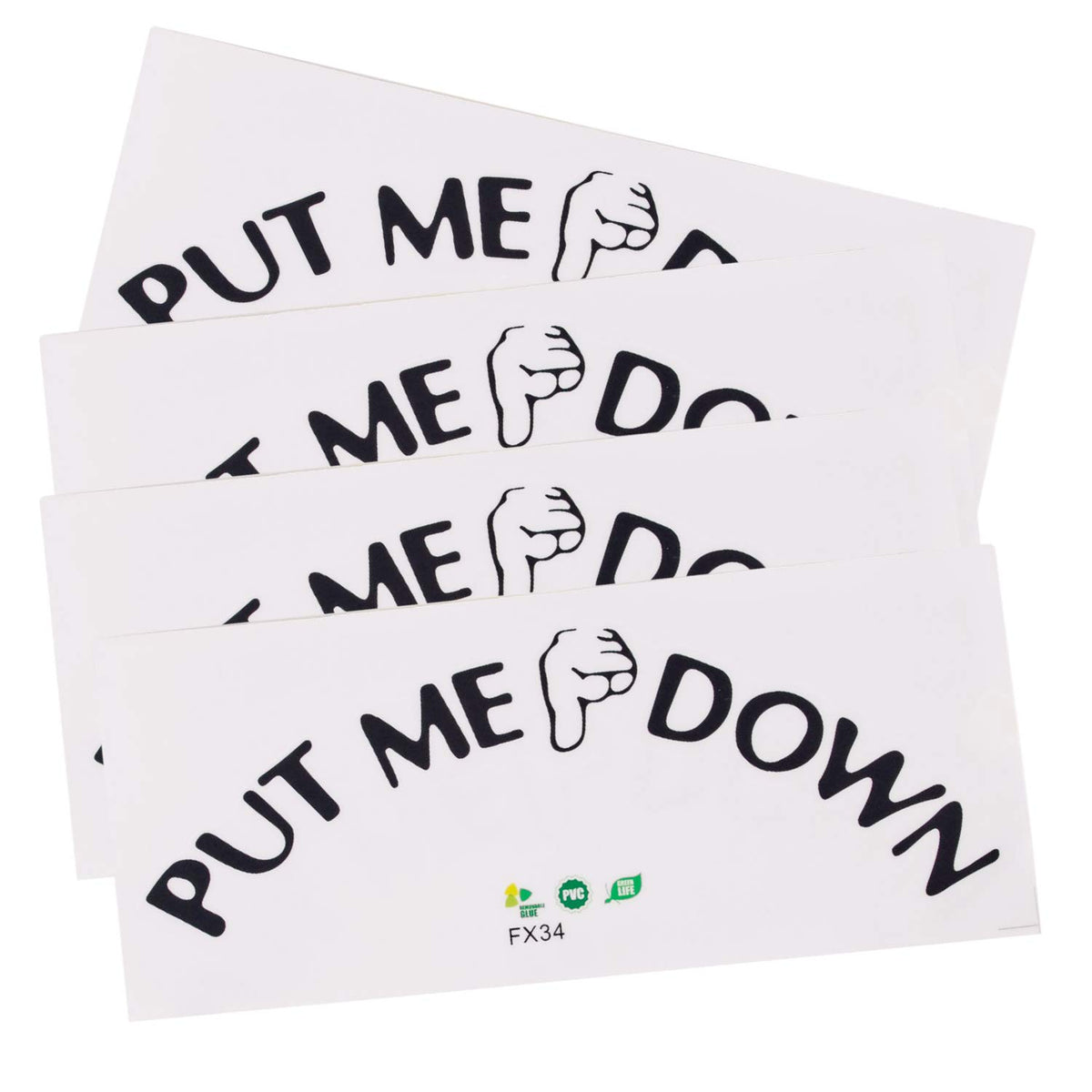 Put Me Down Toilet Seat Decal: -Size(Approx): 0.6*0.31 Inch.-Material: Pvc-Quantity: 4 Pcs -Colors: As The Picture Show, Black. Features:1.Made Of Pvc, And It Is Waterproof.2.Give Your Home Bathroom A New Feature Bring Good Mood To You. 3.Can Remind The People To Flush The Toilet. Note:1.The Colors May Exist Slight Difference Due To Different Screens.2.Please Allow Slight Size Error Due To Manual Measurement.