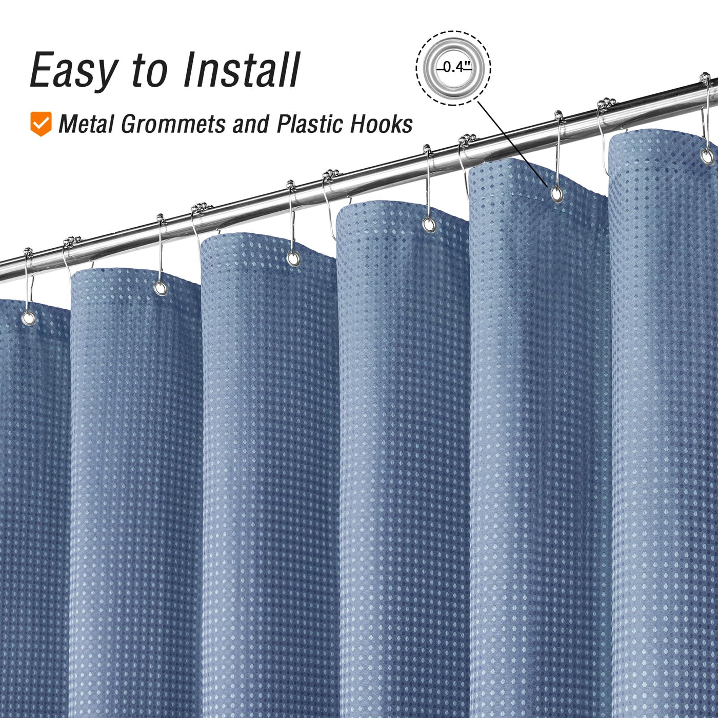Q: What material is the shower curtain made from?A: The Gibelle Shower Curtain is made from 100% heavy-duty polyester fabric, featuring a soft and comfortable waffle weave texture that is durable for long-term use.