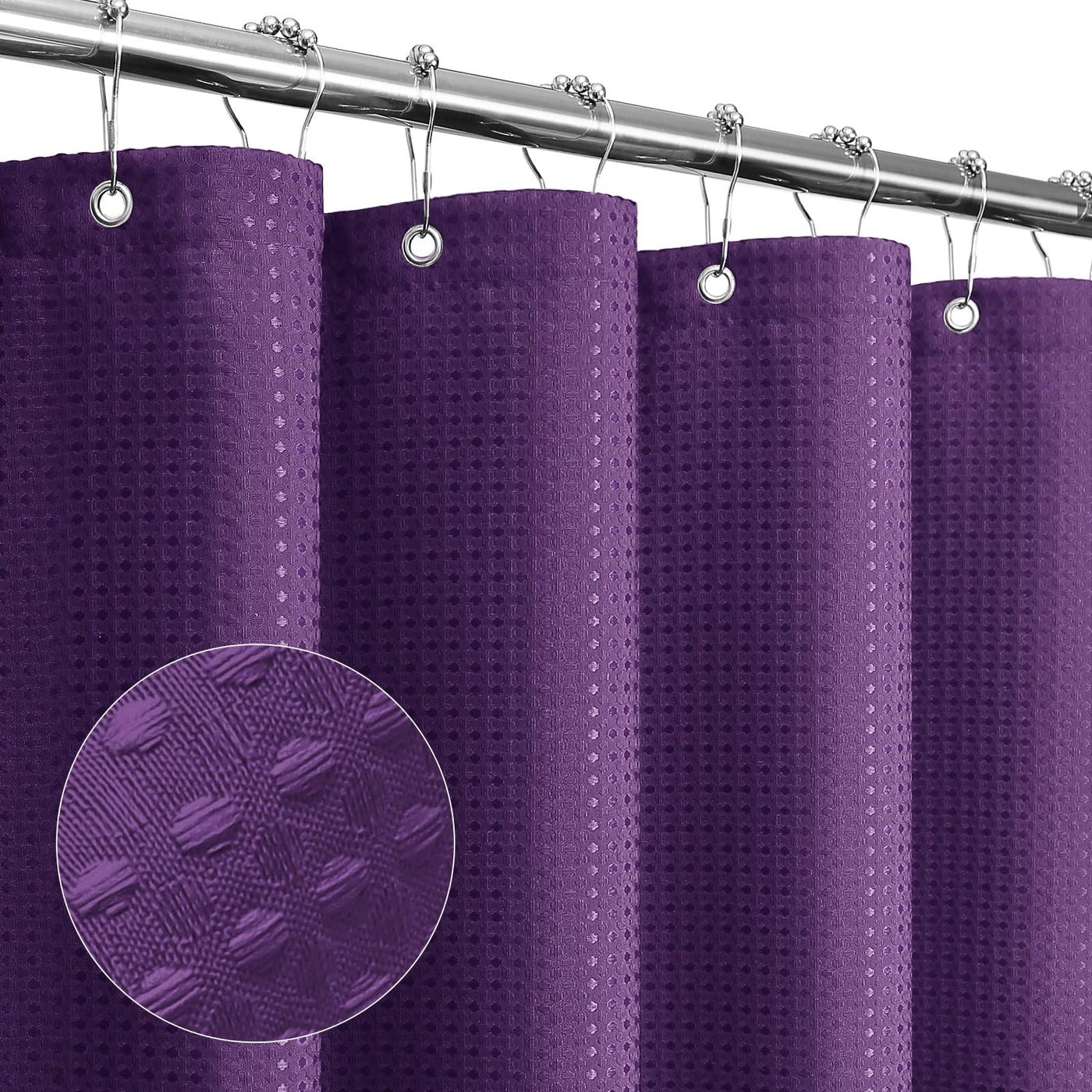 Gibelle Purple Shower Curtain, Waffle Weave Textured Fabric Shower Curtain For Bathroom - Soft Cloth & Hotel Spa Luxury, Water R