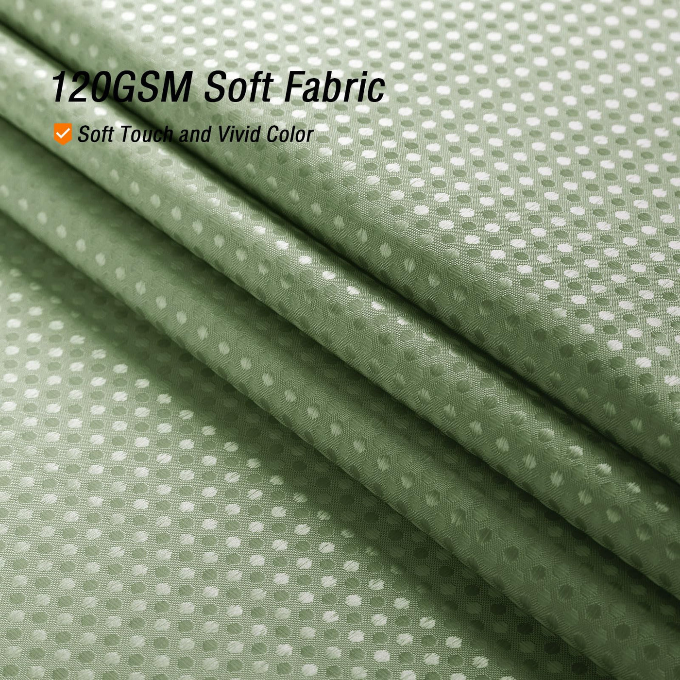 Q: What material is the Gibelle Sage Green Shower Curtain made of?A: The Gibelle Sage Green Shower Curtain is made of 100% polyester, which provides durability and water-repellent properties.