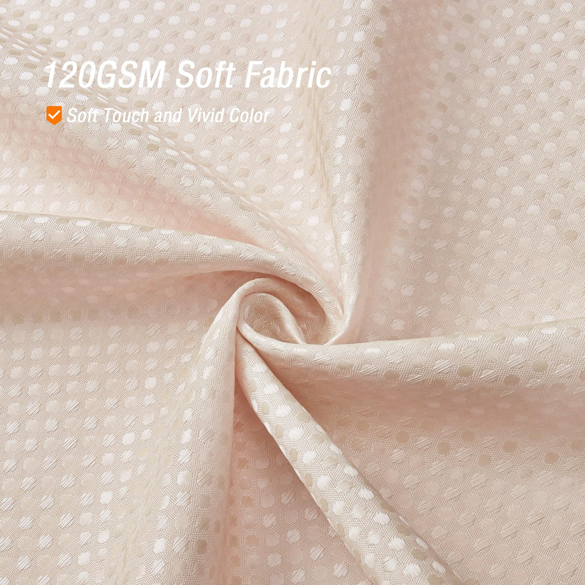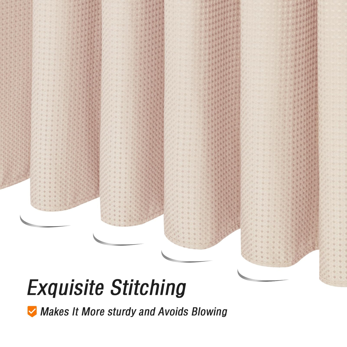 Q: What material is the shower curtain made of?A: The Gibelle Small Stall Shower Curtain is made of 100% heavy-duty polyester fabric, featuring an exquisite small waffle weave texture for added elegance.
