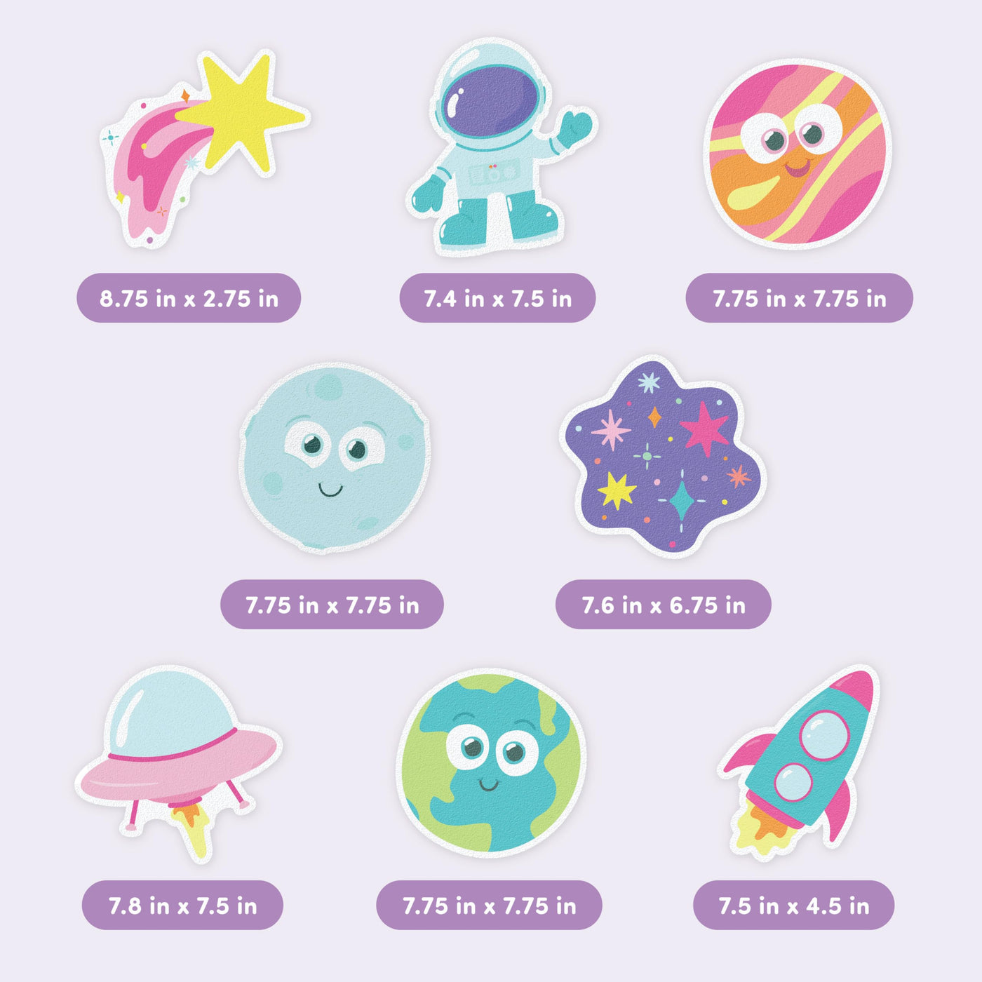 Glo Pals Galaxy Grips Textured Non-Slip Bathtub Stickers, 8 Extra Large Fun Kids Anti Slip Bath Decals