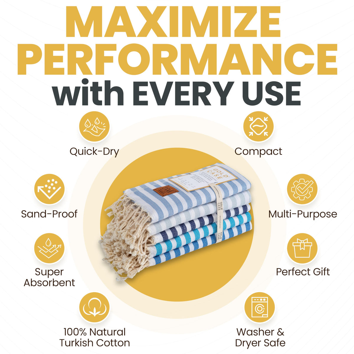 Q: Can these towels be used for purposes other than drying hands?A: Absolutely! The Gold CASE Turkish hand towels are versatile and can be used for various purposes, including drying your face, as spa towels, dishcloths, or even for yoga and gym activities. Their quick-dry feature enhances their practicality for multiple uses.