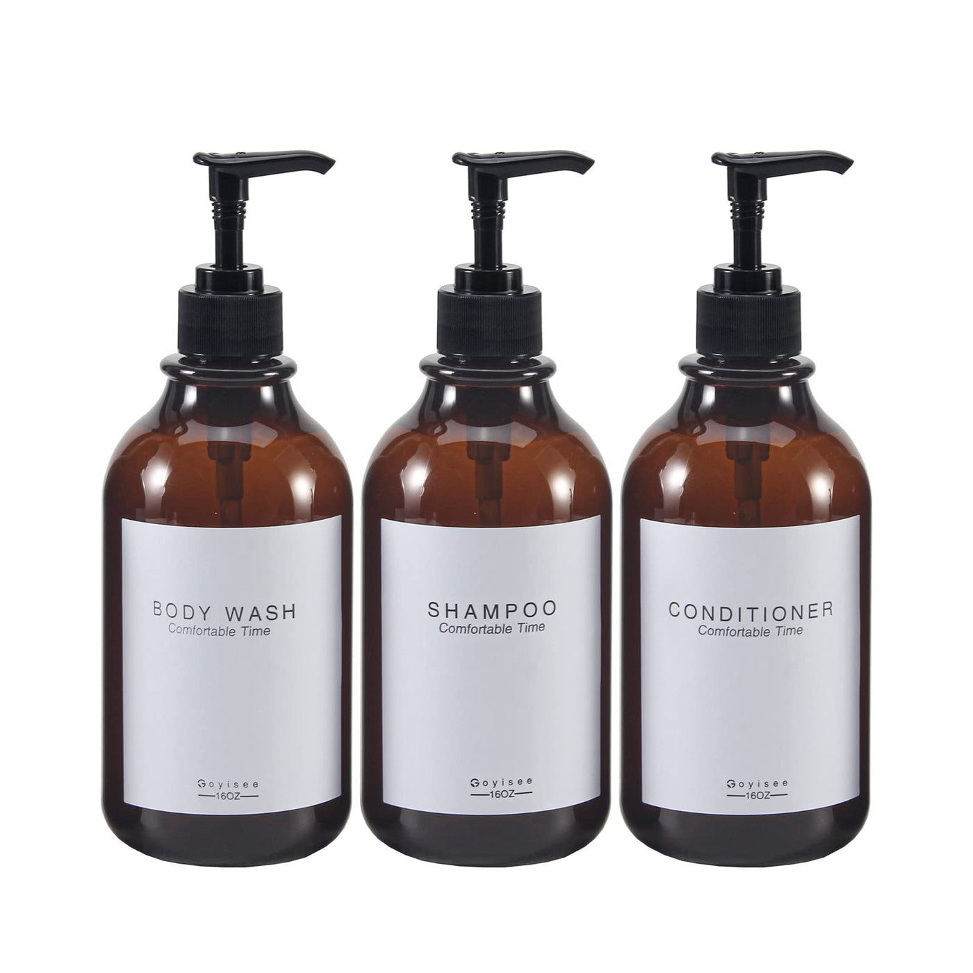 Goyisee Shampoo And Conditioner Dispenser For Shower Wall 3 Chamber,Refillable Shampoo And Conditioner Bottles With Waterproof Labels,Soap Dispenser With Pumps