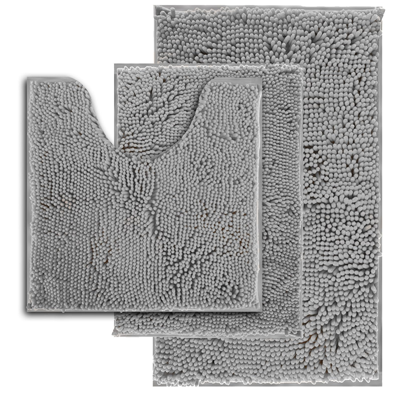 Gray Bathroom Rugs Non Slip 3 Piece Bathroom Rug Set Ultra Soft Bath Rug,Absorbent Shaggy Bath Mat Set,Perfect Plush Bathroom Ma