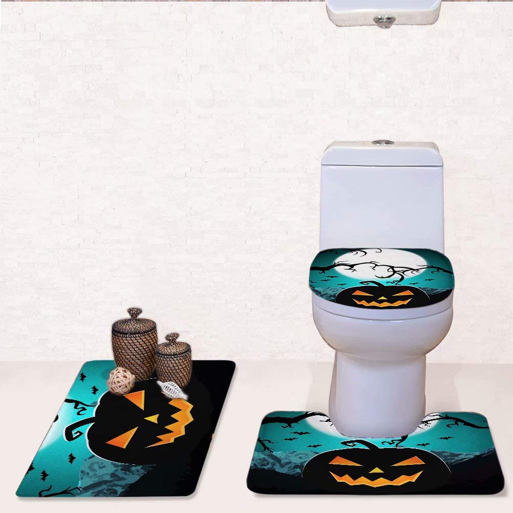 Halloween Pumpkin Pattern Bathroom Rug Set Toilet Seat Cover Contour Mat 3 Pcs For U Designs
