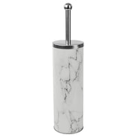 Q: How does the design of this toilet brush set enhance my bathroom?A: The stylish white marble design of this toilet brush holder adds a touch of elegance and sophistication to any bathroom, making it a chic addition to contemporary or traditional decor.