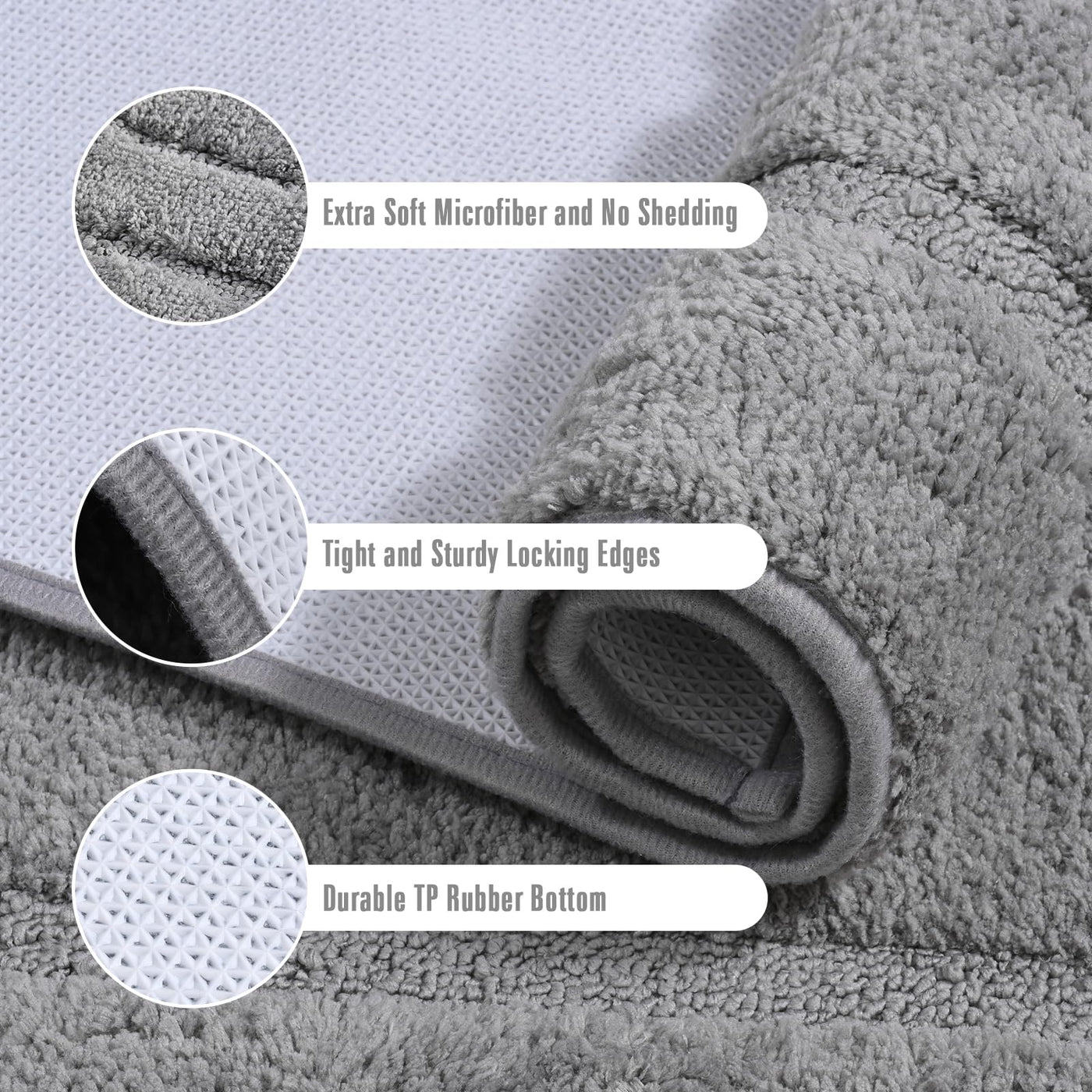Q: What materials are used in the HOMORE Grey Bathroom Rug?A: The HOMORE Grey Bathroom Rug is made of high-density plush microfiber, which is super absorbent and provides a soft cushion for your feet. It also features a sturdy TP rubber backing for a strong grip on the floor.