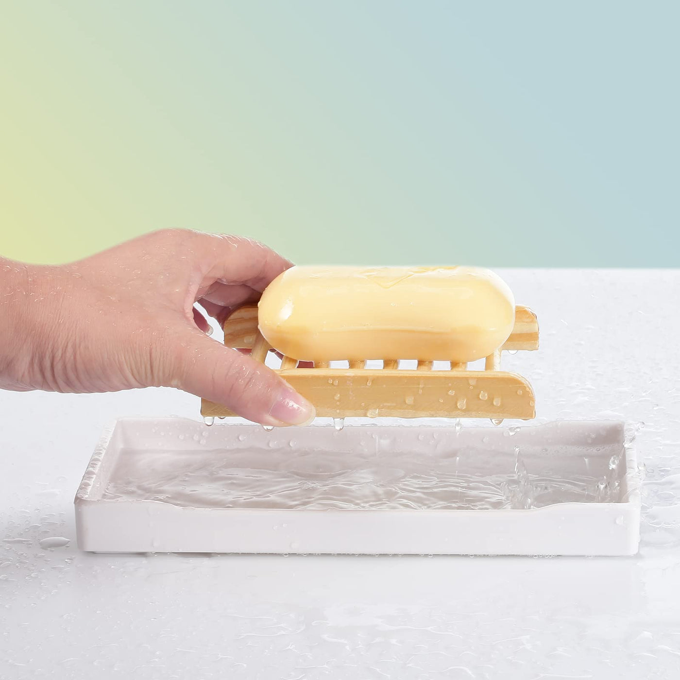 Q: Can the bamboo soap holders be used in places other than the bathroom?A: Yes, the bamboo soap holders are versatile and can be used in various locations, including the kitchen for dishwashing sponges, cleaning balls, and other household items.