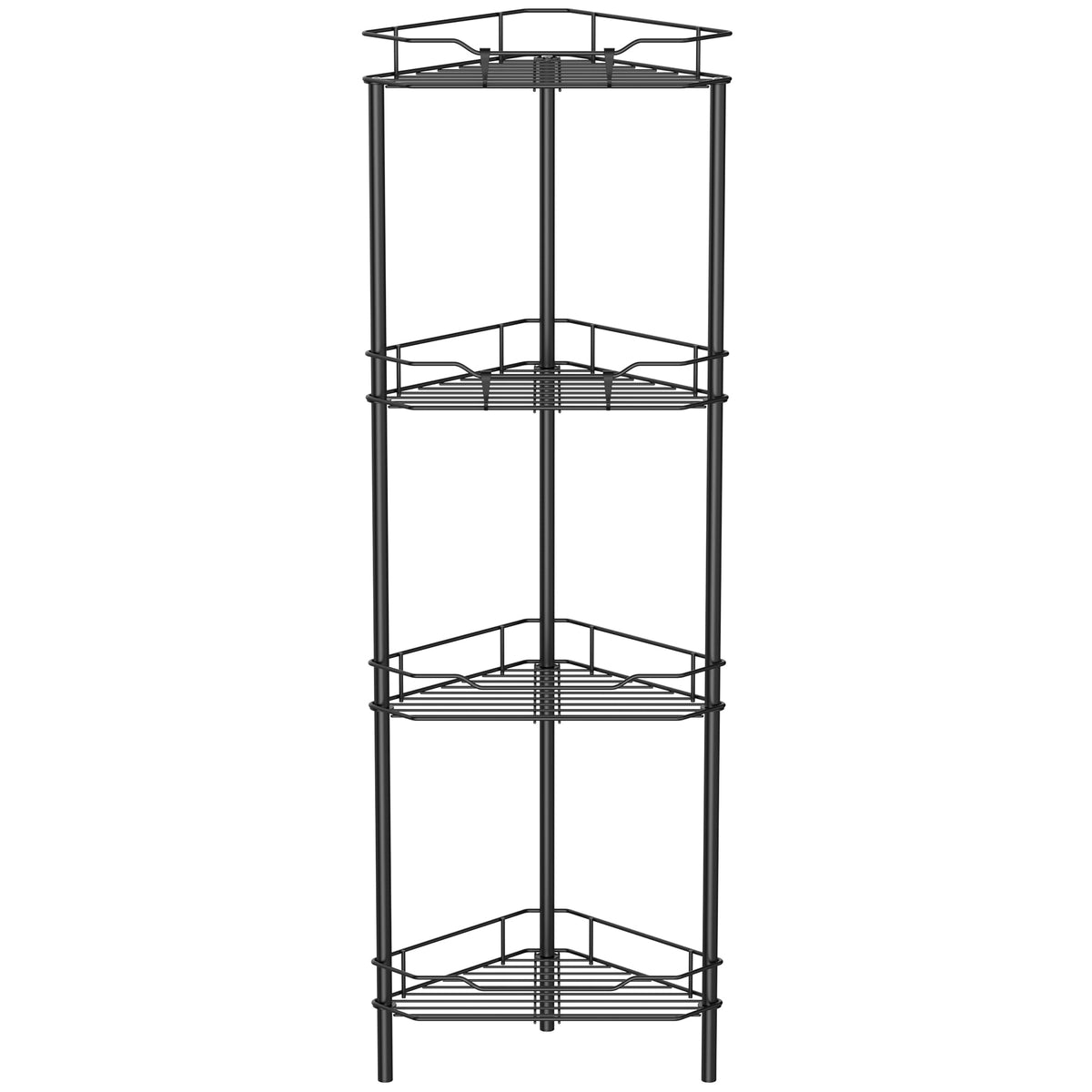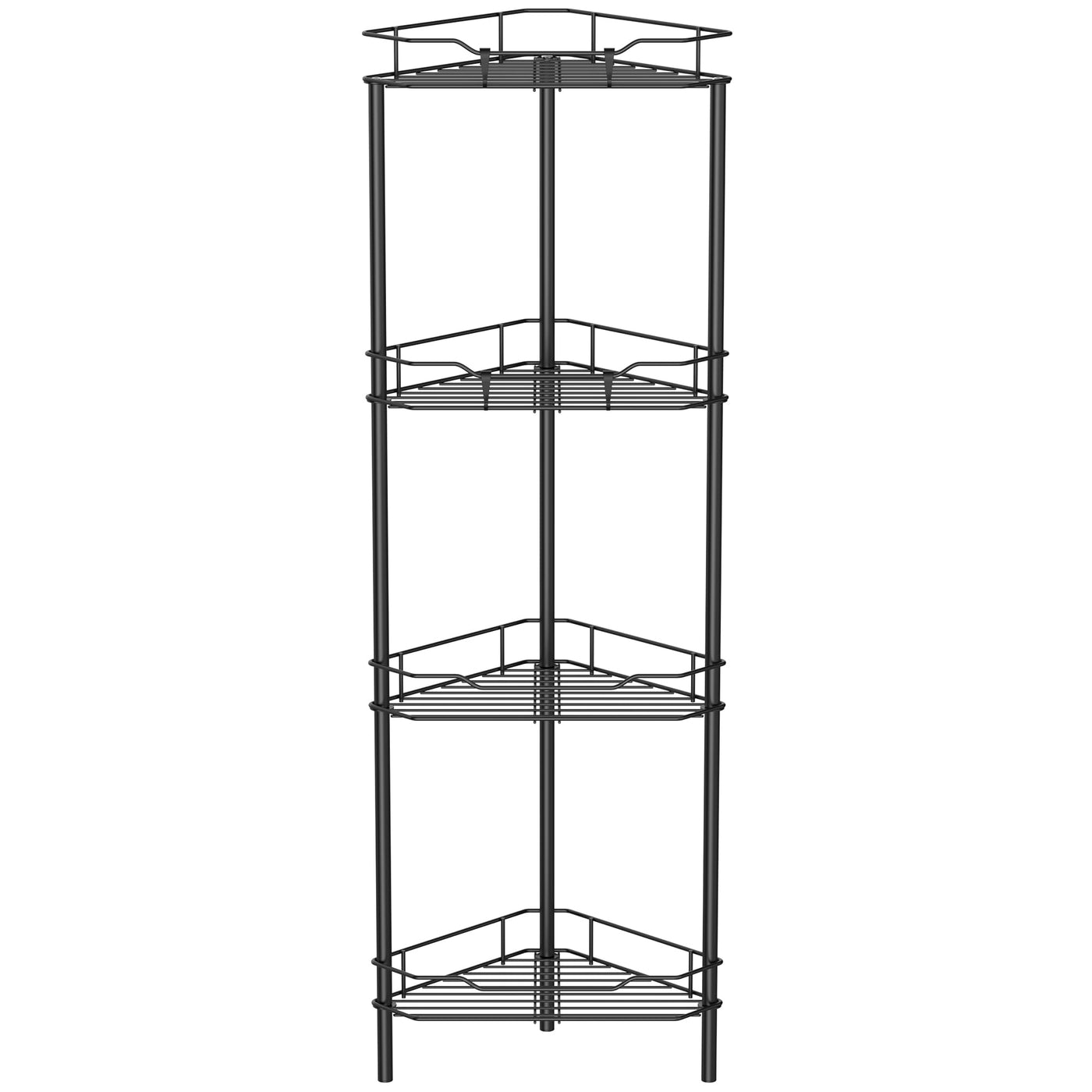 Huggiegems 4 Tier Floor Standing Corner Shower Caddy Organizer Shelf With Hooks, Bathroom Shelves Stand Rack, Black