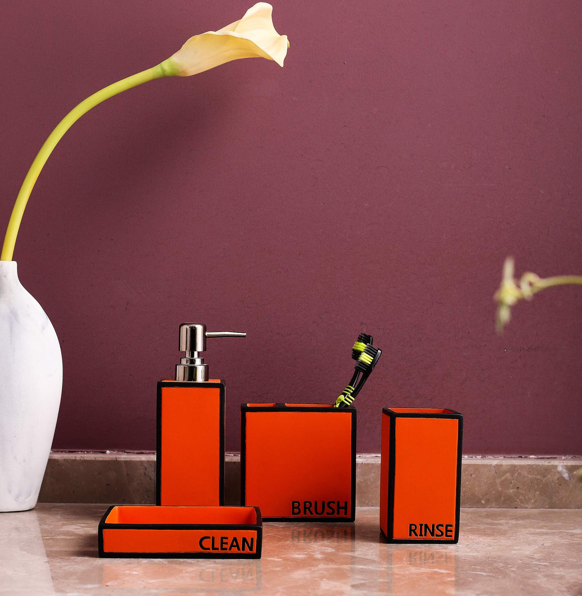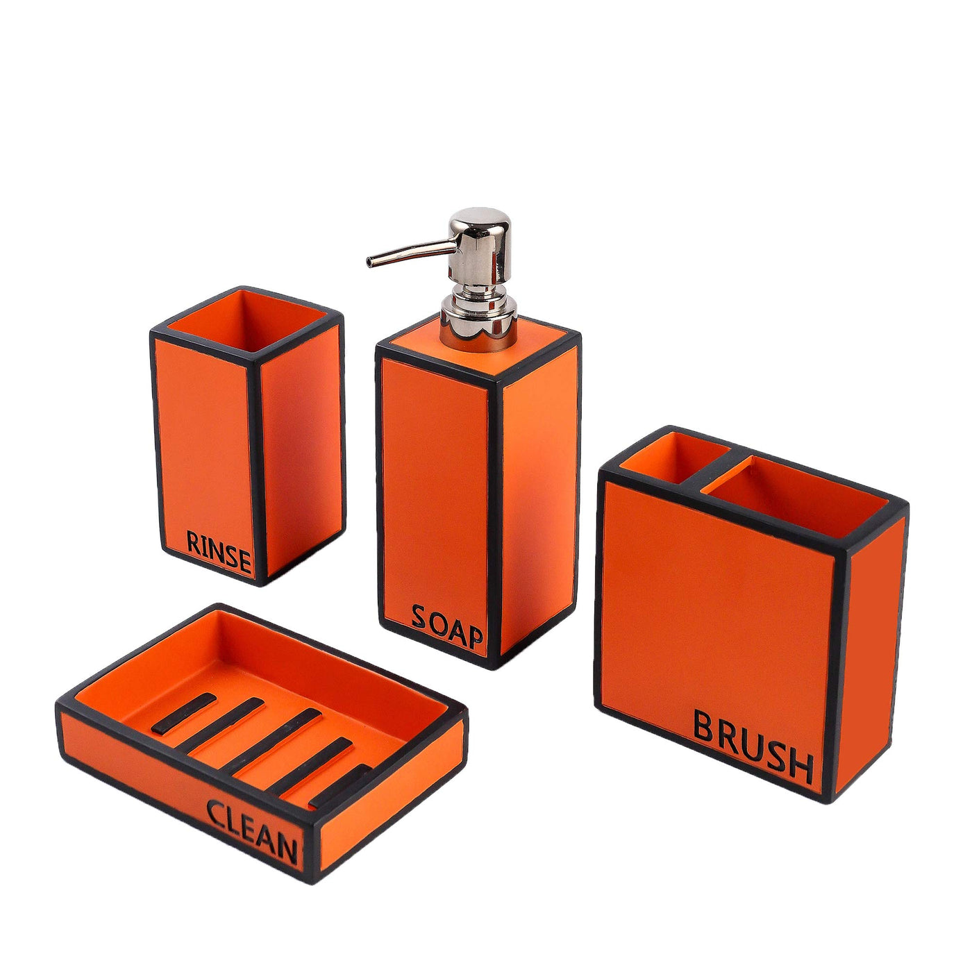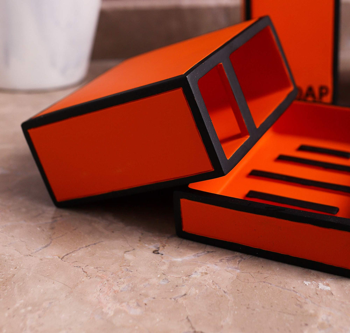Q: Are the colors of the bathroom accessories customizable?A: Currently, the Hymmah Bathroom Accessories Set is available in a simple orange color, which is designed to complement various decor styles, but customization options are not offered.