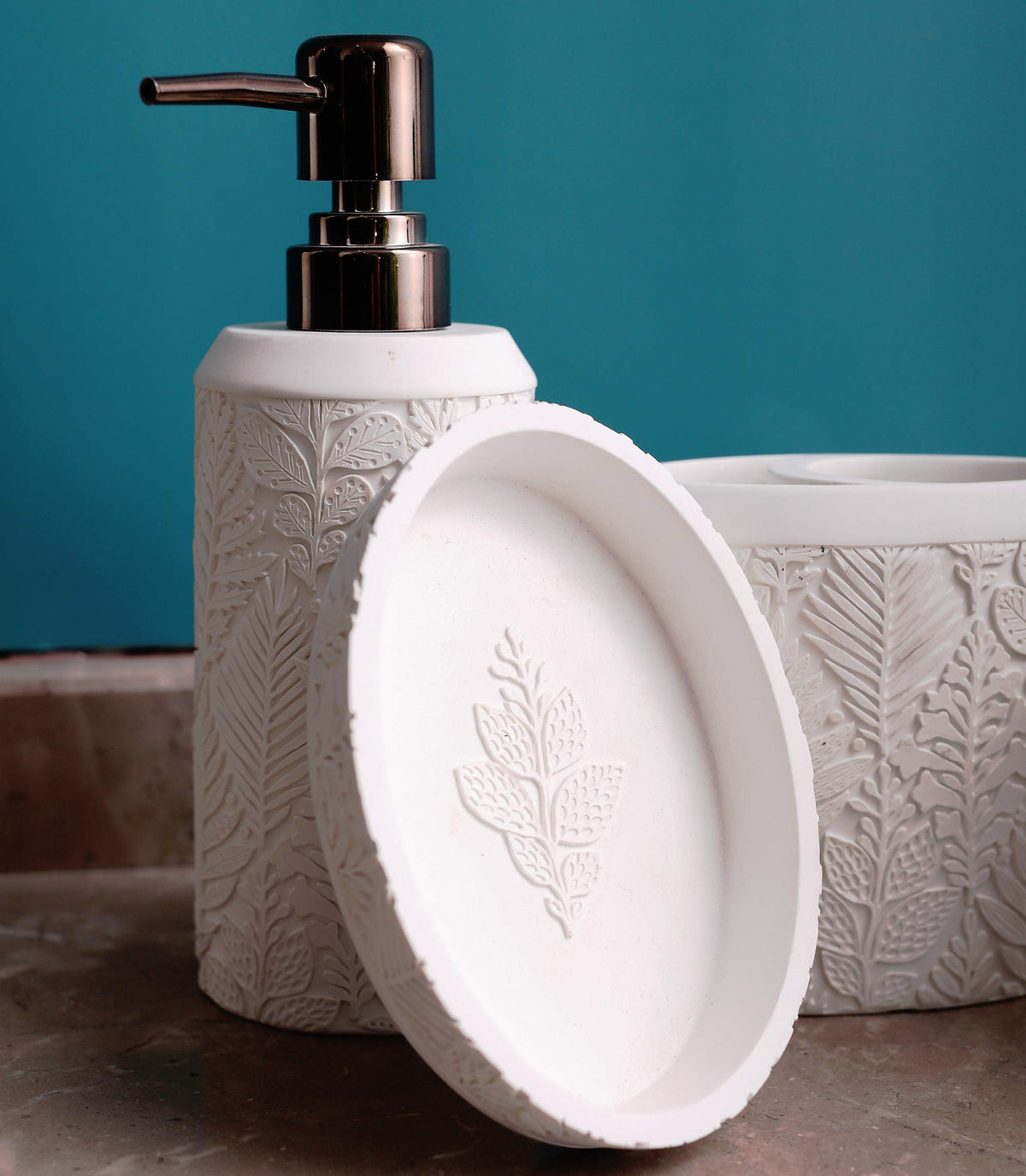 Q: How can I clean and maintain the bathroom accessories set?A: To maintain the Hymmah Bathroom Accessories Set, simply wipe the resin surfaces with a damp cloth and mild soap. Avoid abrasive cleaners to preserve the finish.