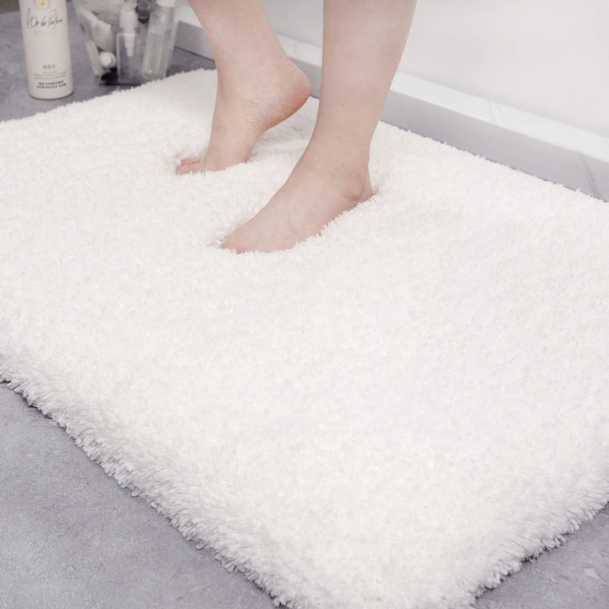 Ilango White Bathroom Rug Super Absorbent, Washable Bath Mat Non Slip For Floor, Microfiber Thick Plush Shaggy Bath Rug With Rub